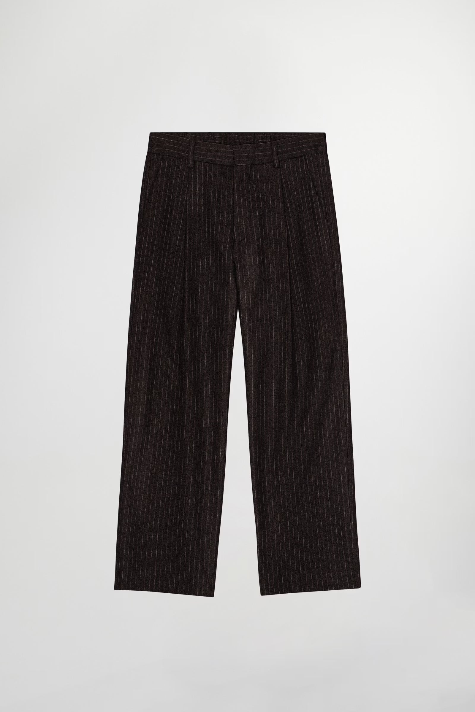 Made from a 380 g/m² recycled wool blend, these dress trousers offer a premium handfeel while having a relaxed fit. The pleats at front and wool twill weaving give the trousers a classic and clean look, featuring pockets on the back and a hook and bar plus zipper for closure.