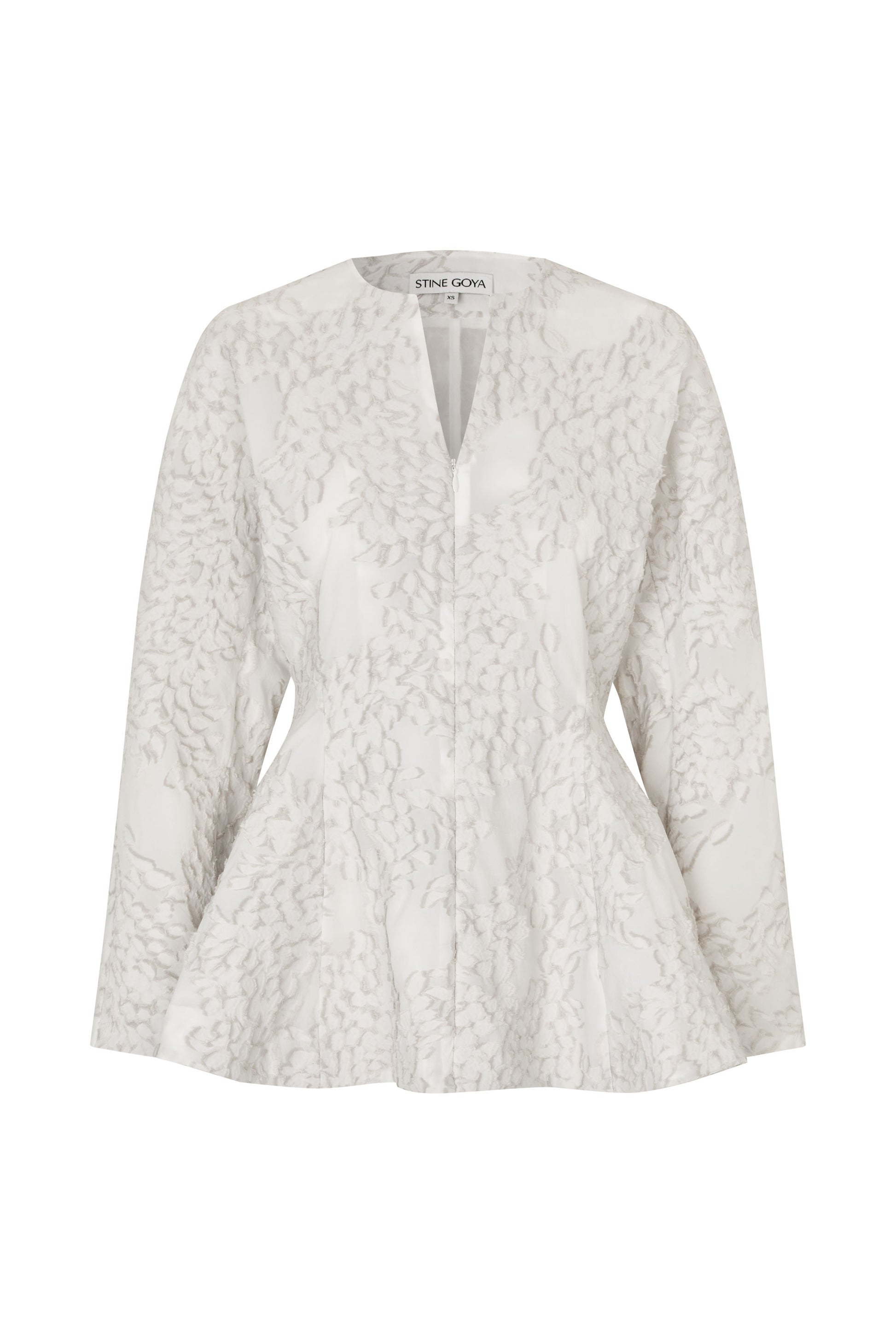 2493 Textured Fil Coupe, Flared Hem Zip-Up Top