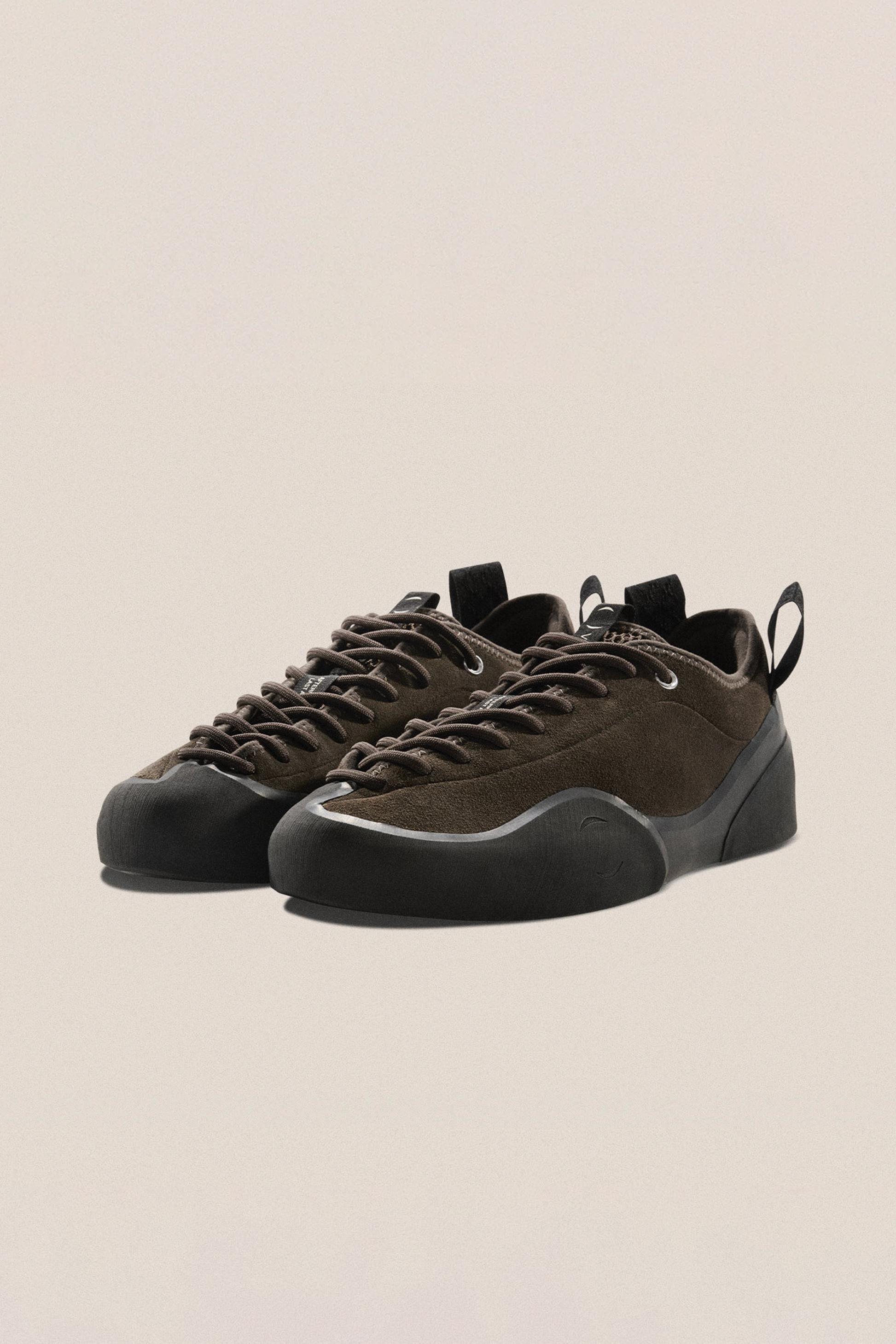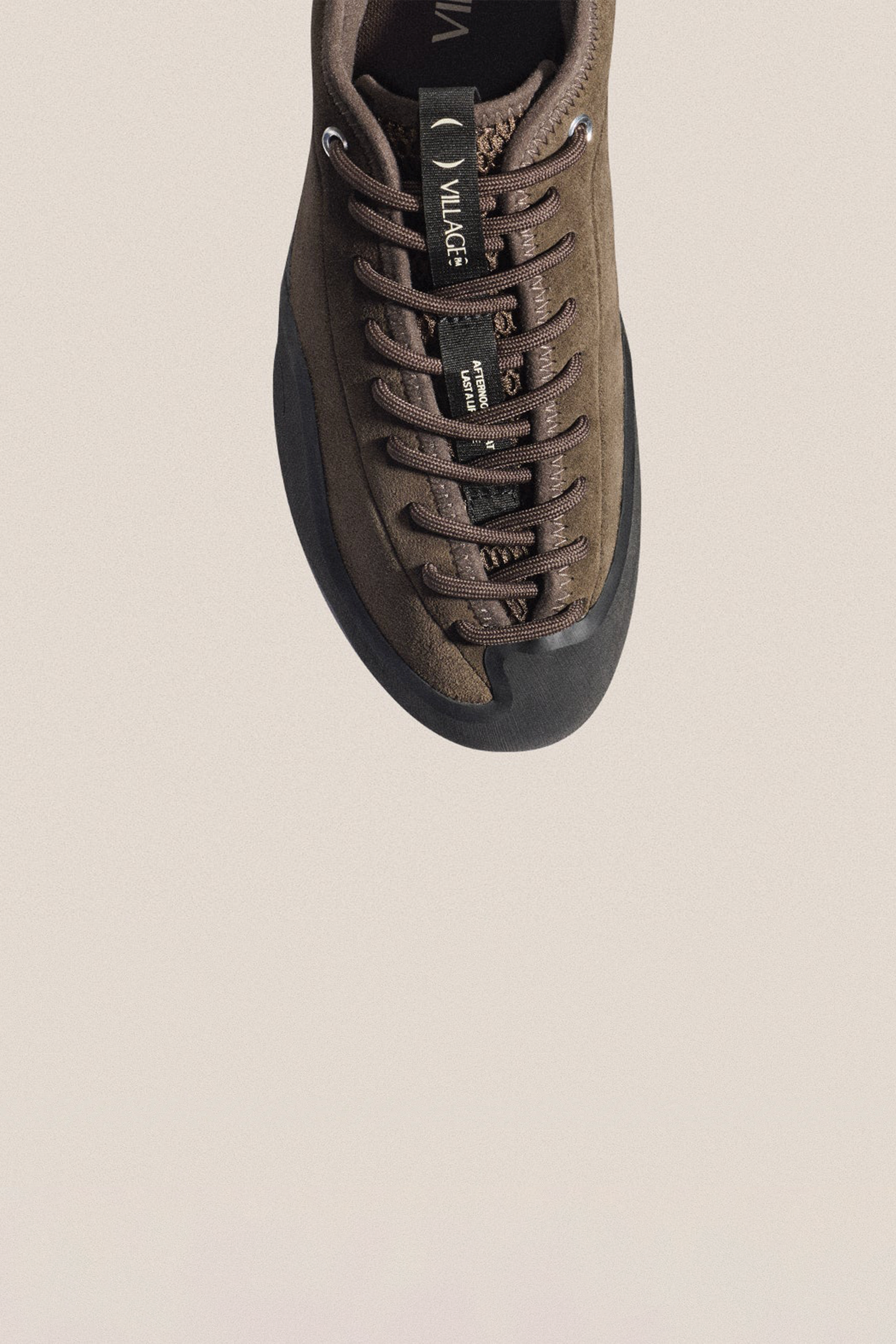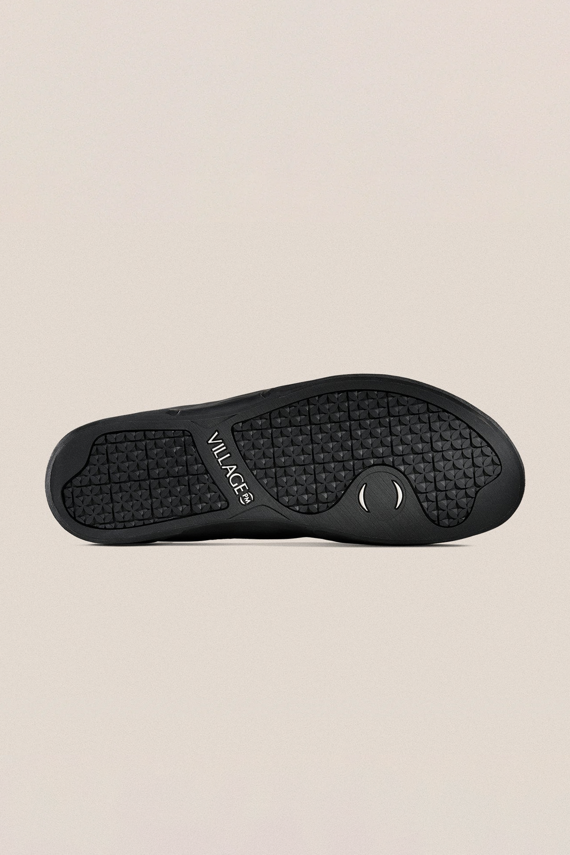 Not vulcanised. Not a cupsole. Soft, sticky rubber that breaks in fast, keeps consistent flick and lasts a long time. Manually wrapped around your foot for a precise fit that stays close throughout the lifetime of your Village PM shoe.