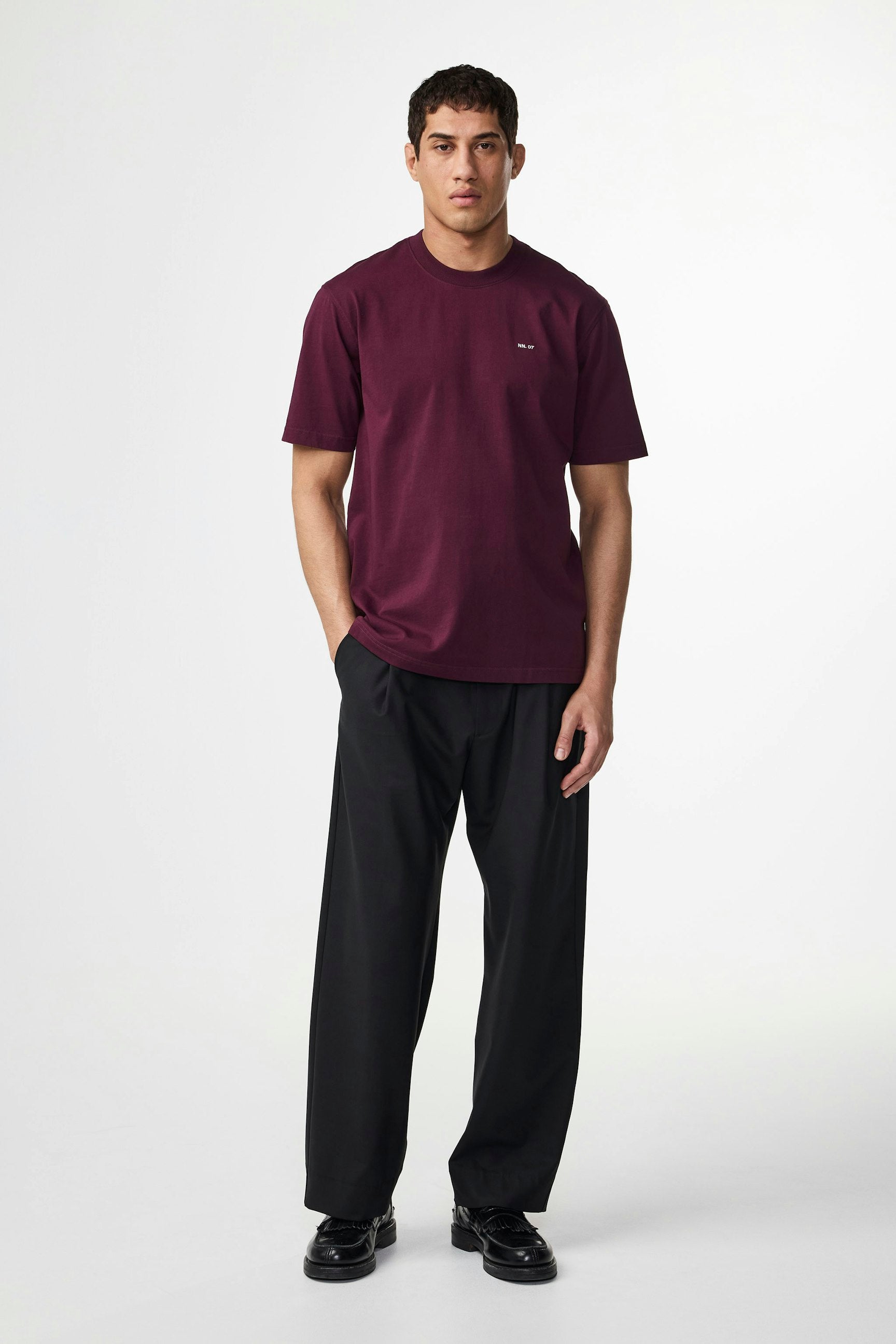 Casual tee made in a fine Pima cotton jersey with an NN.07 logo, twin needle stitching details and a neat rib along the neckline.