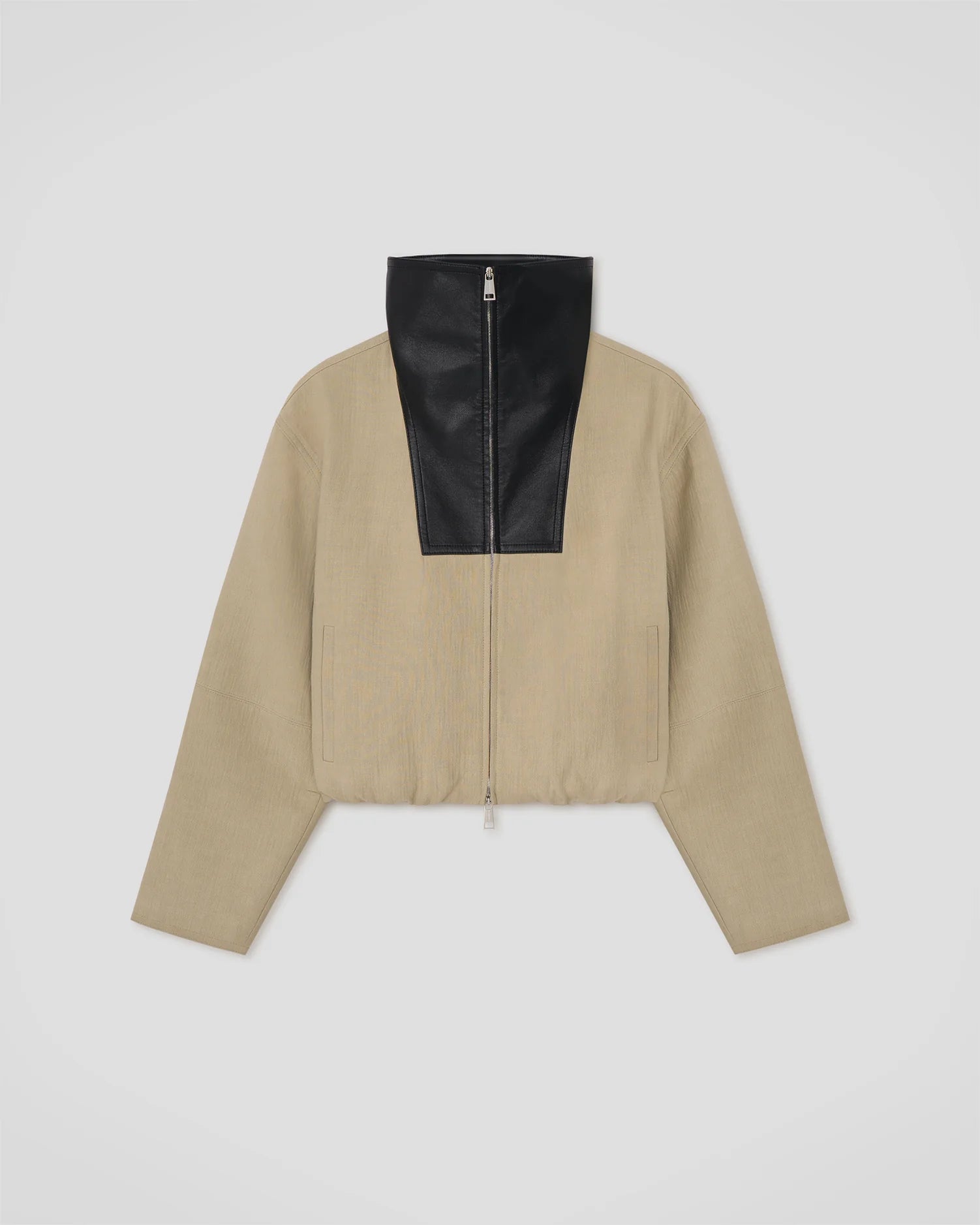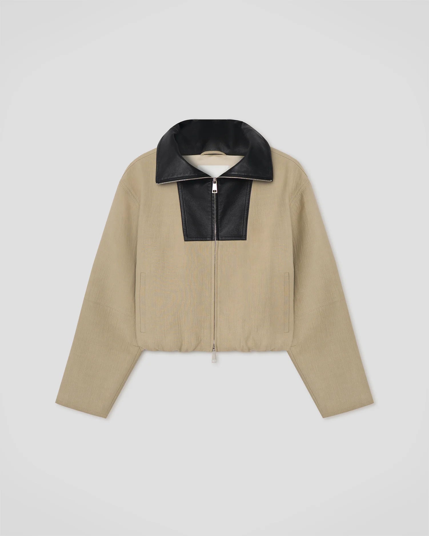 SHELL 1: 80% SILK 20% NYLON SHELL 2: Base: 100% POLYESTER Coating: 100% POLYURETHANE Back: BONDED LEATHER MIDDLE: 80% POLYEST