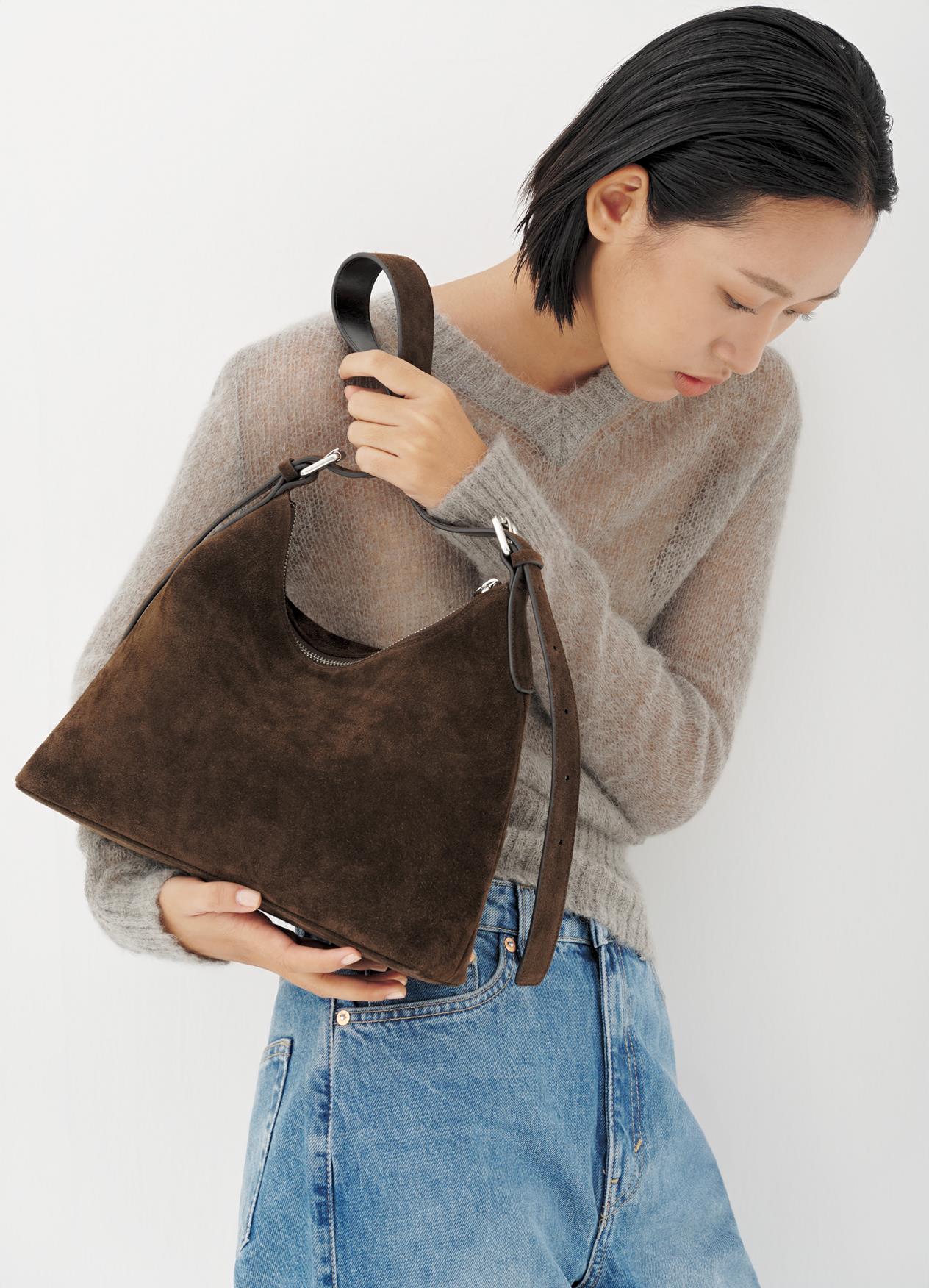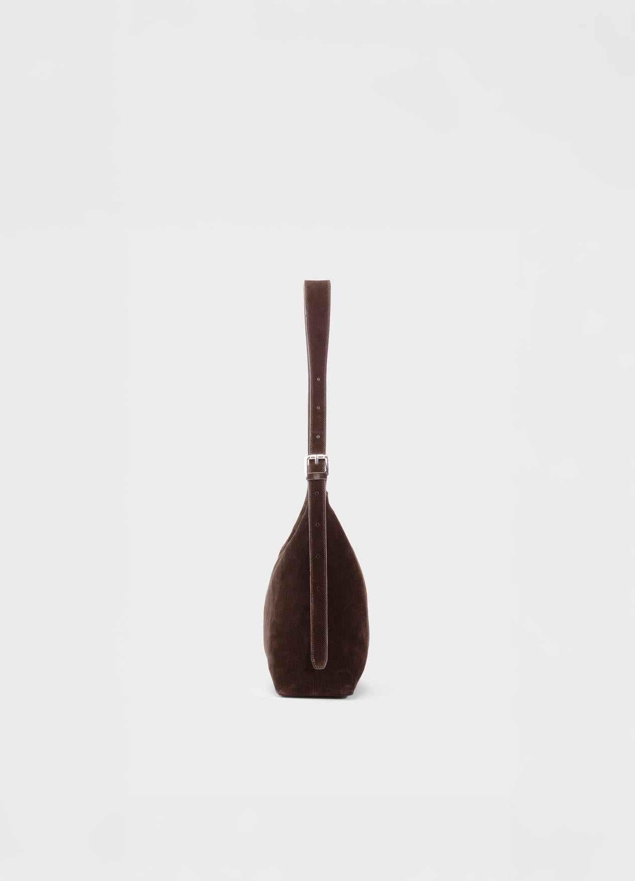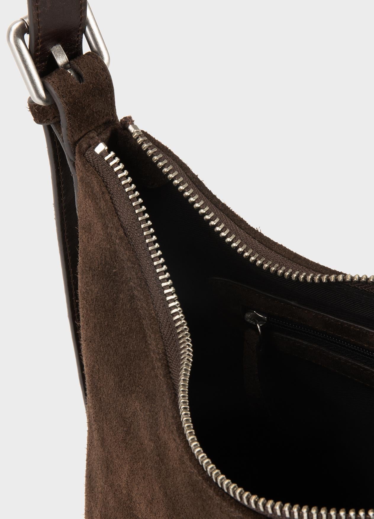The Vagabond favourite Bari, a sleek A-lined silhouette for everyday wear. The style is crafted from dark brown suede and features silver-coloured hardware.