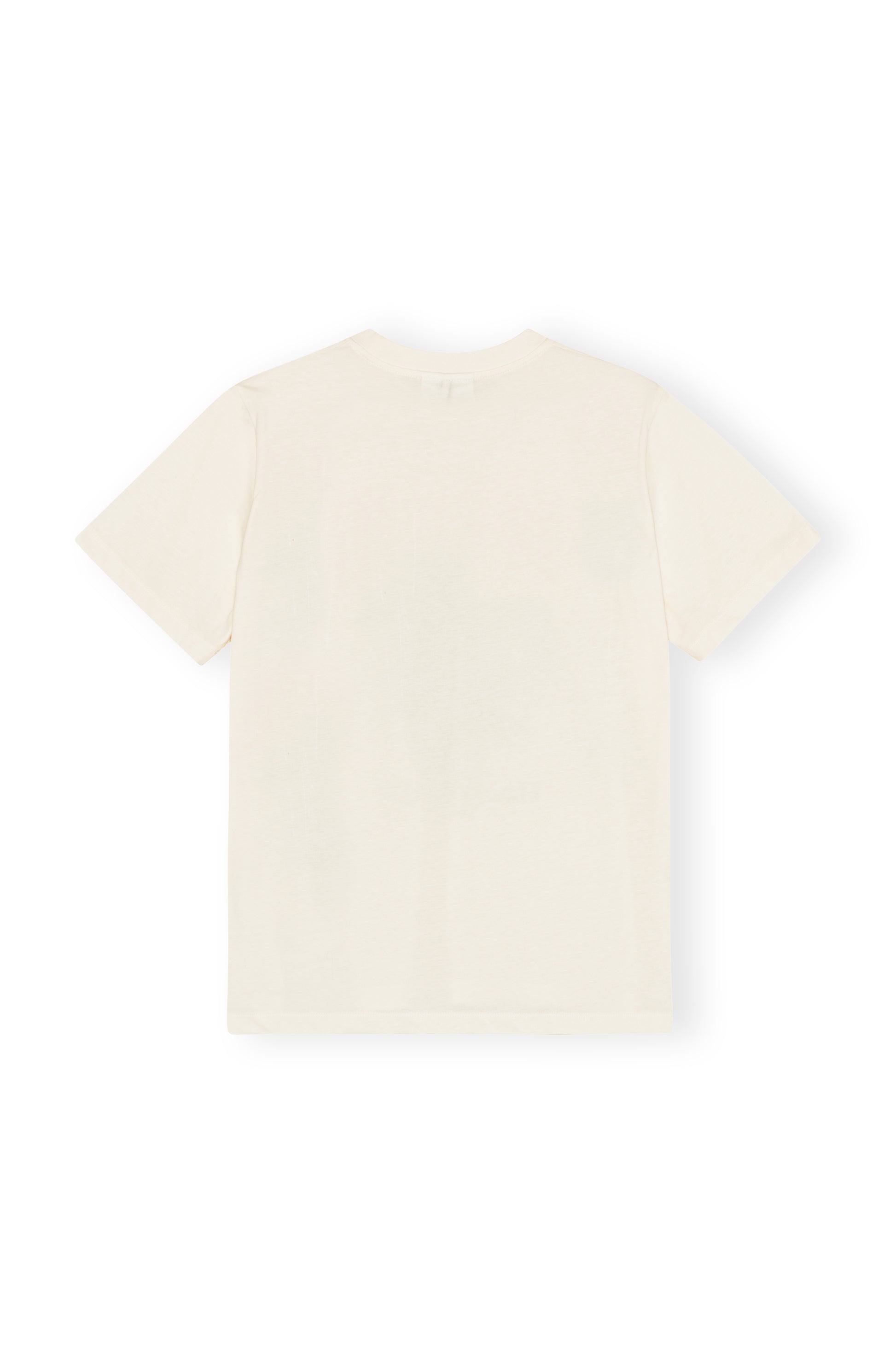 This T-shirt features a round neckline, short sleeves, and a GANNI logo. The T-shirt has a grapes print graphic and a 'Have a nice day! Please recycle' message.