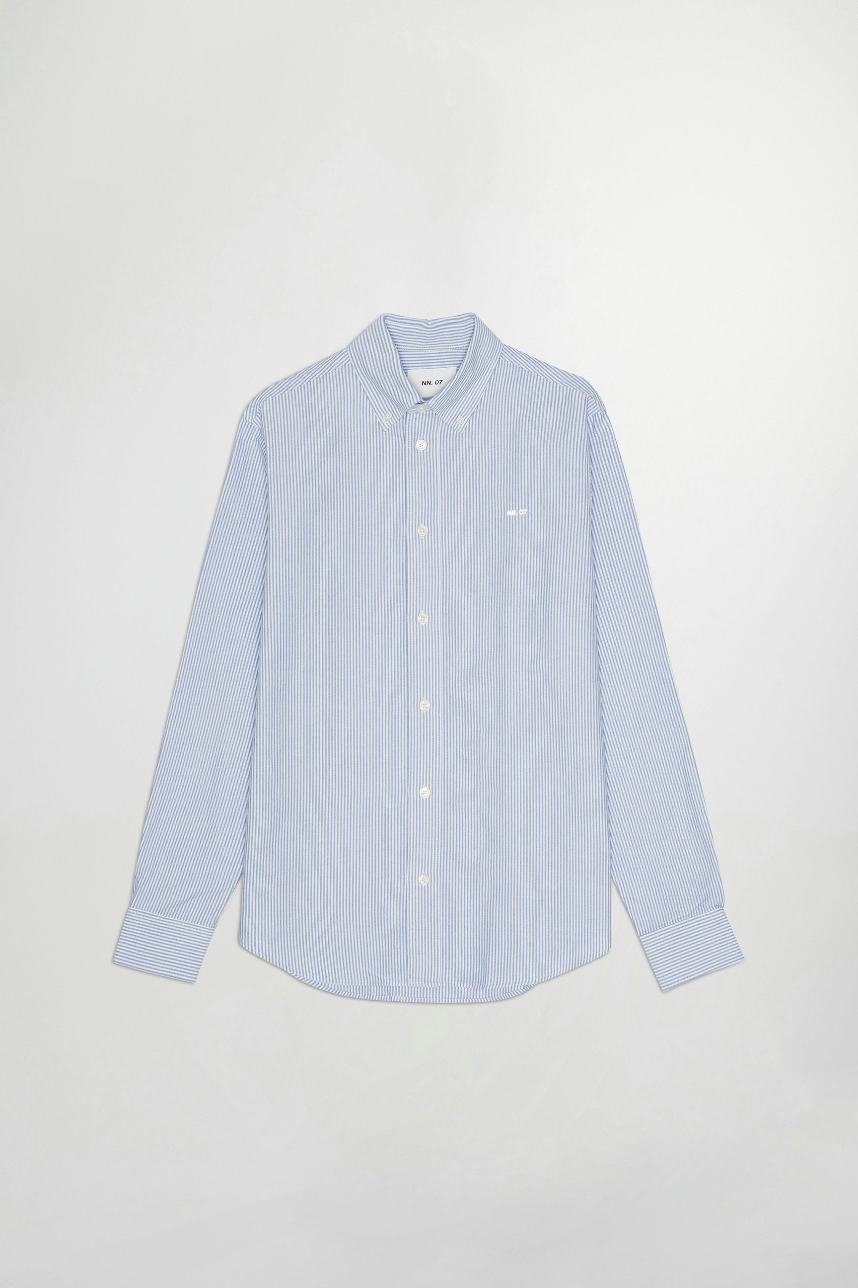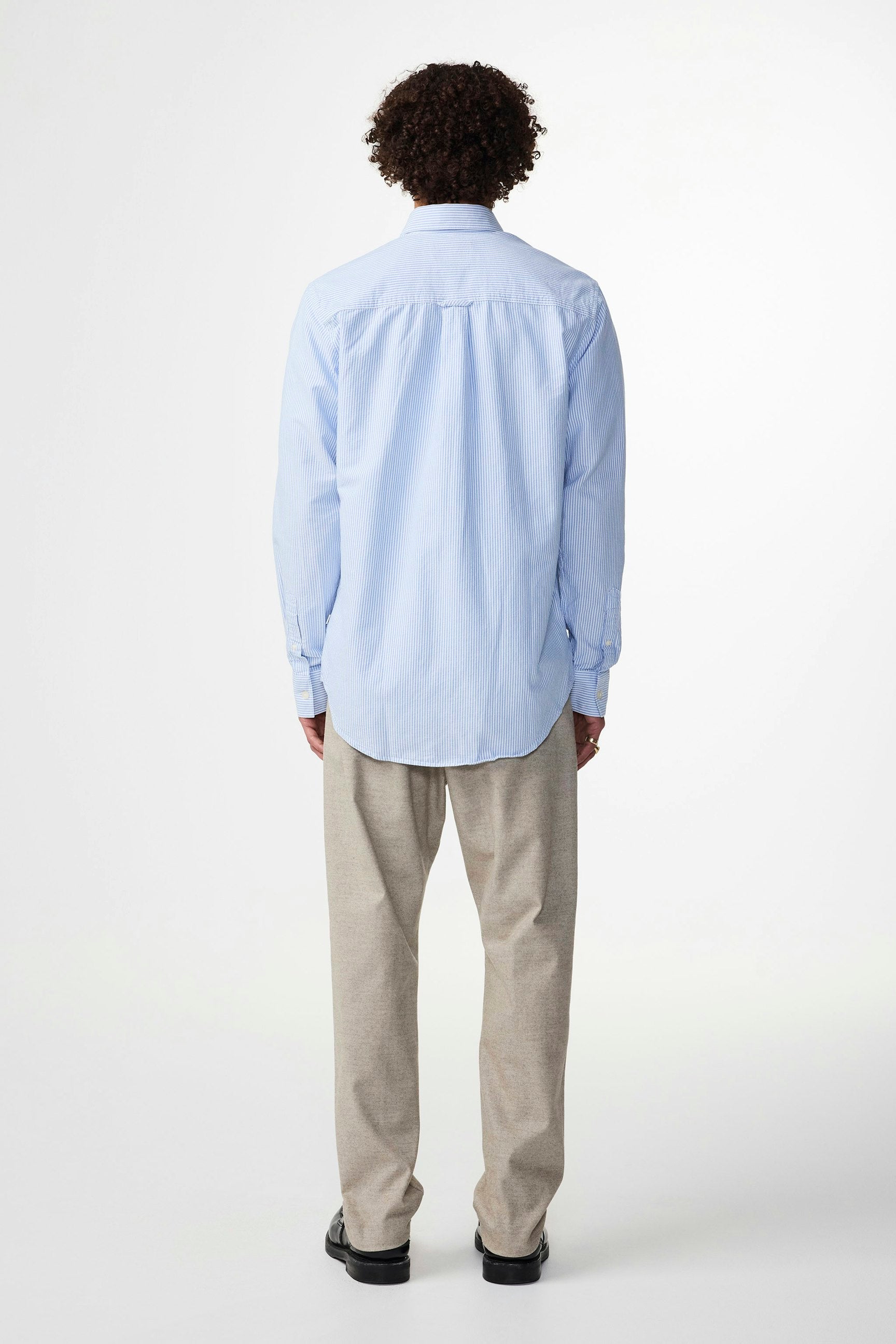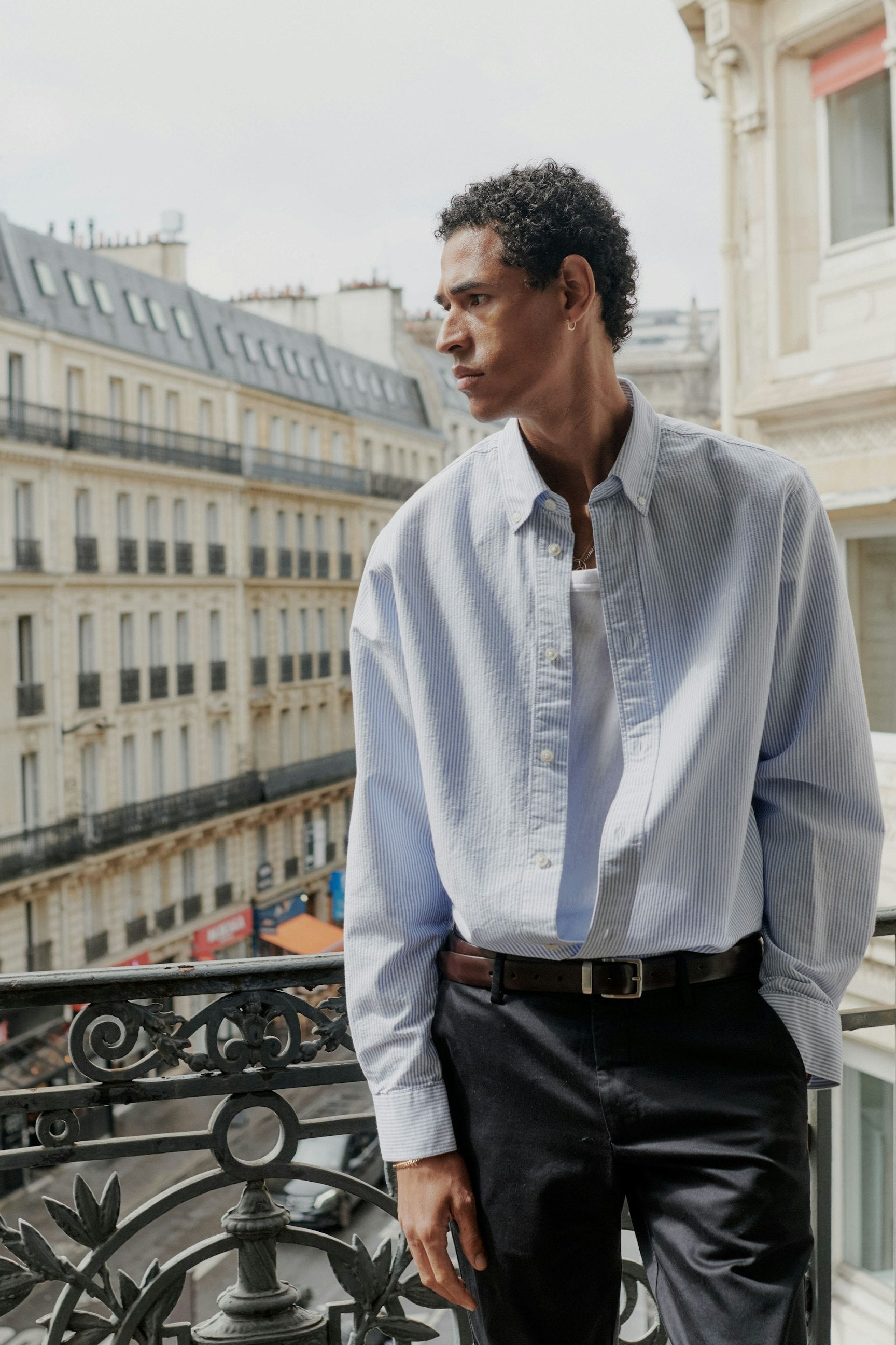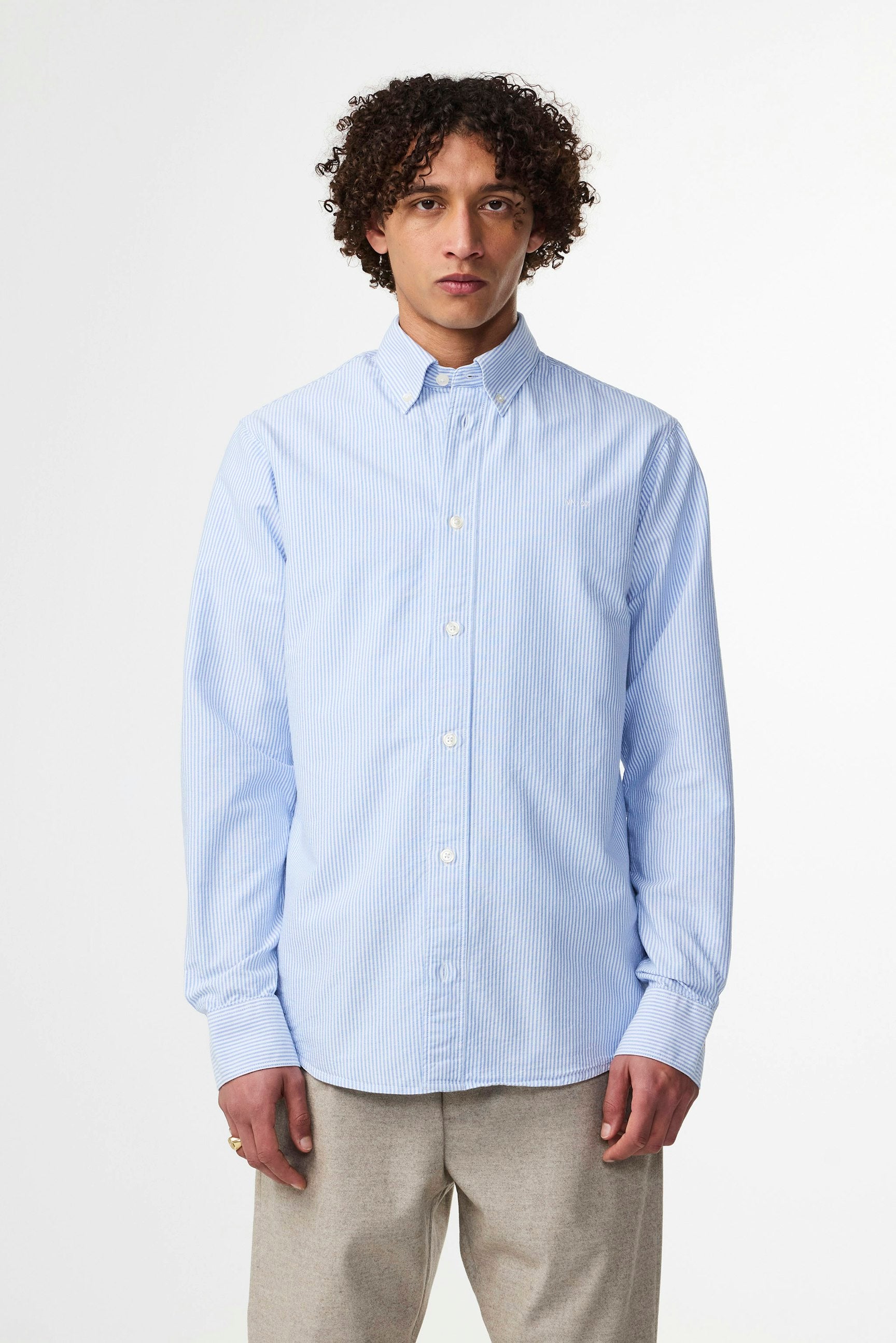 Button-down shirt crafted from soft organic cotton oxford with a classic weave texture. Features a button-down collar and wide placket for a sophisticated yet relaxed aesthetic.