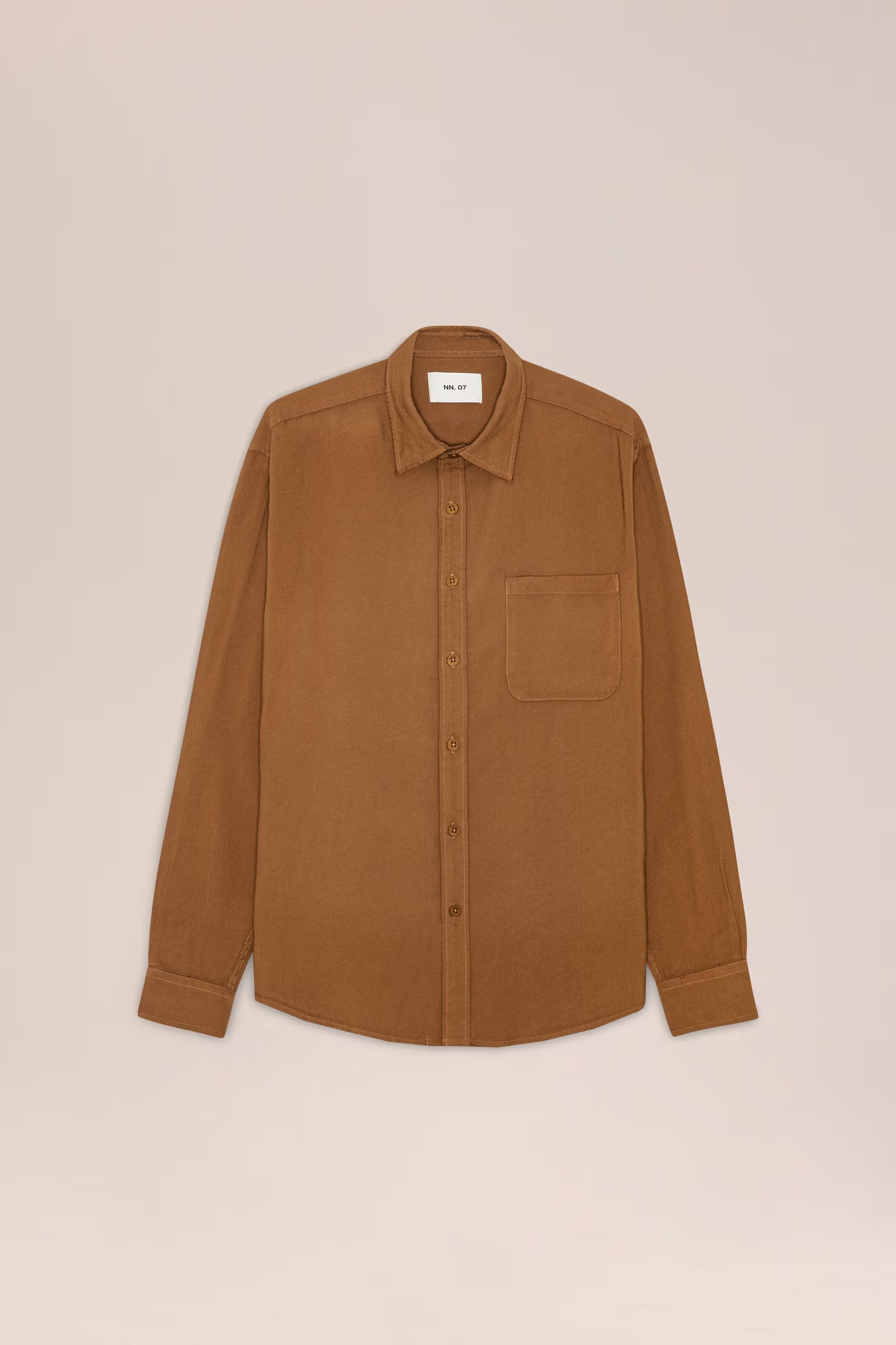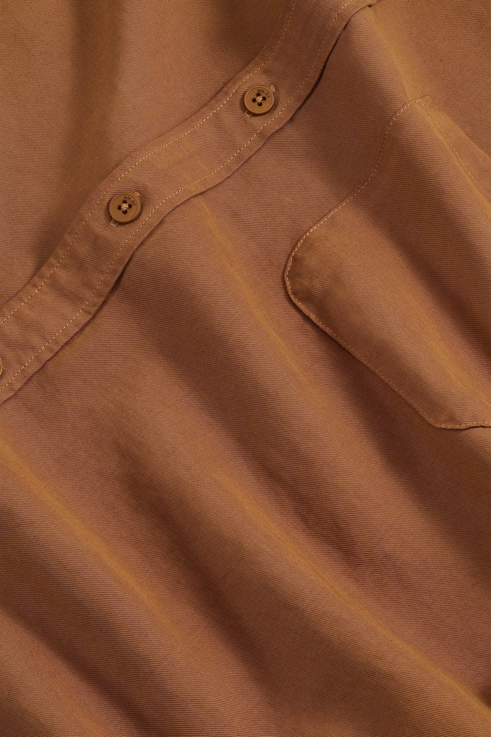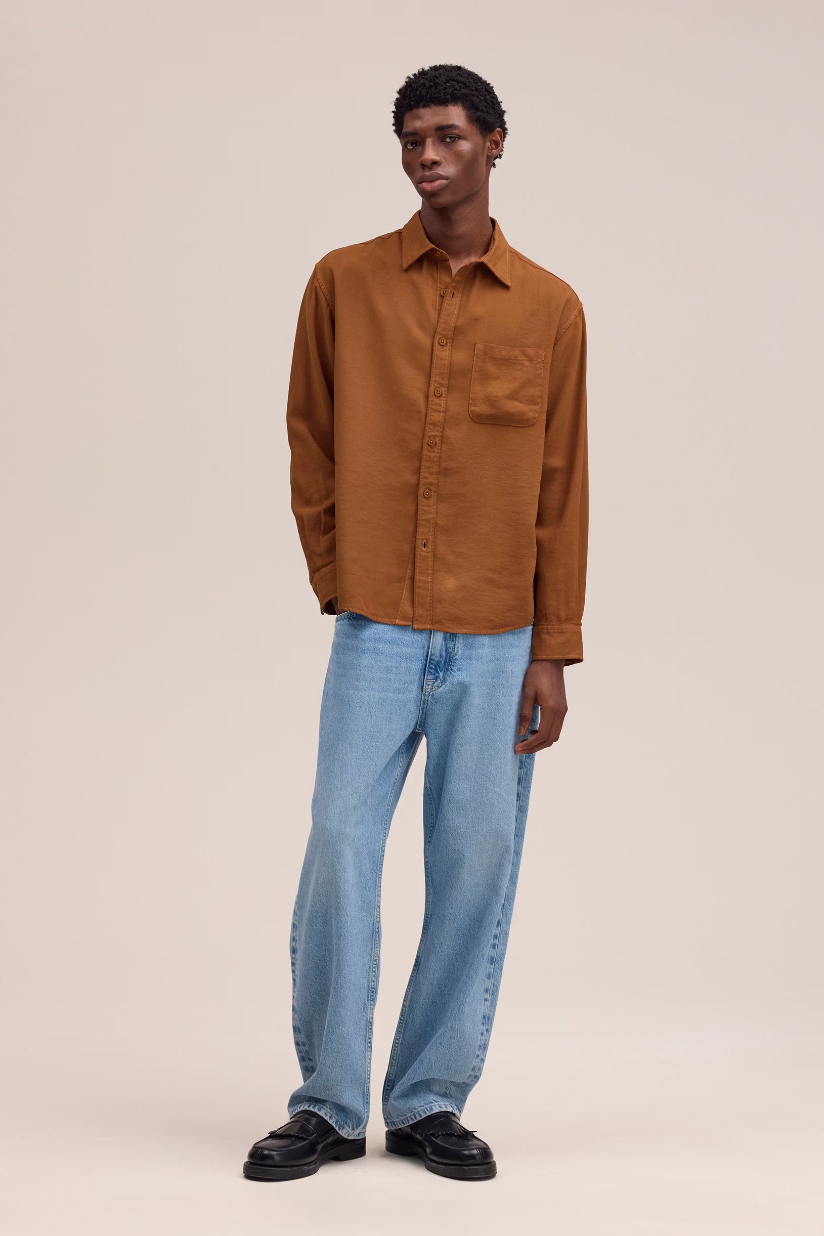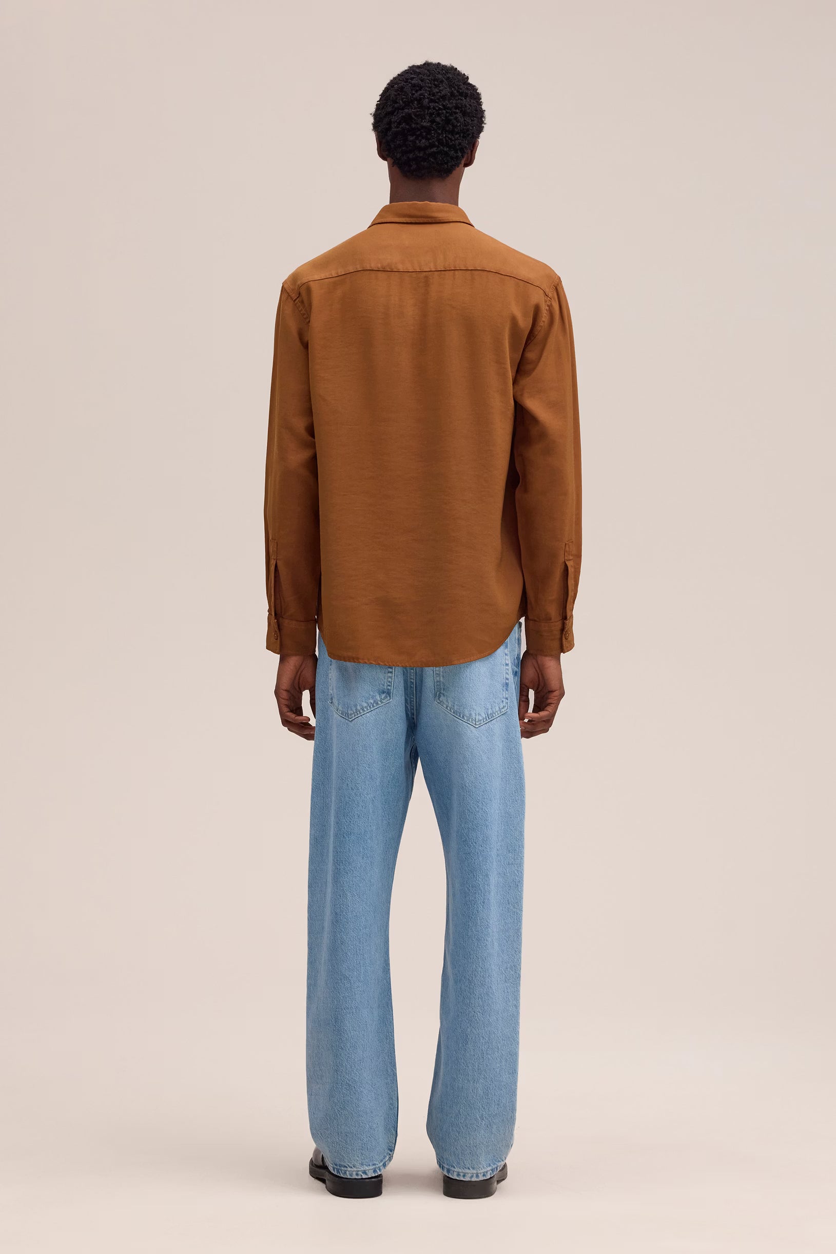 Medium-weight shirt made from soft, drapey LENZING™ ECOVERO™ viscose twill. Designed with a wide placket, curved hem, and slightly dropped shoulders.