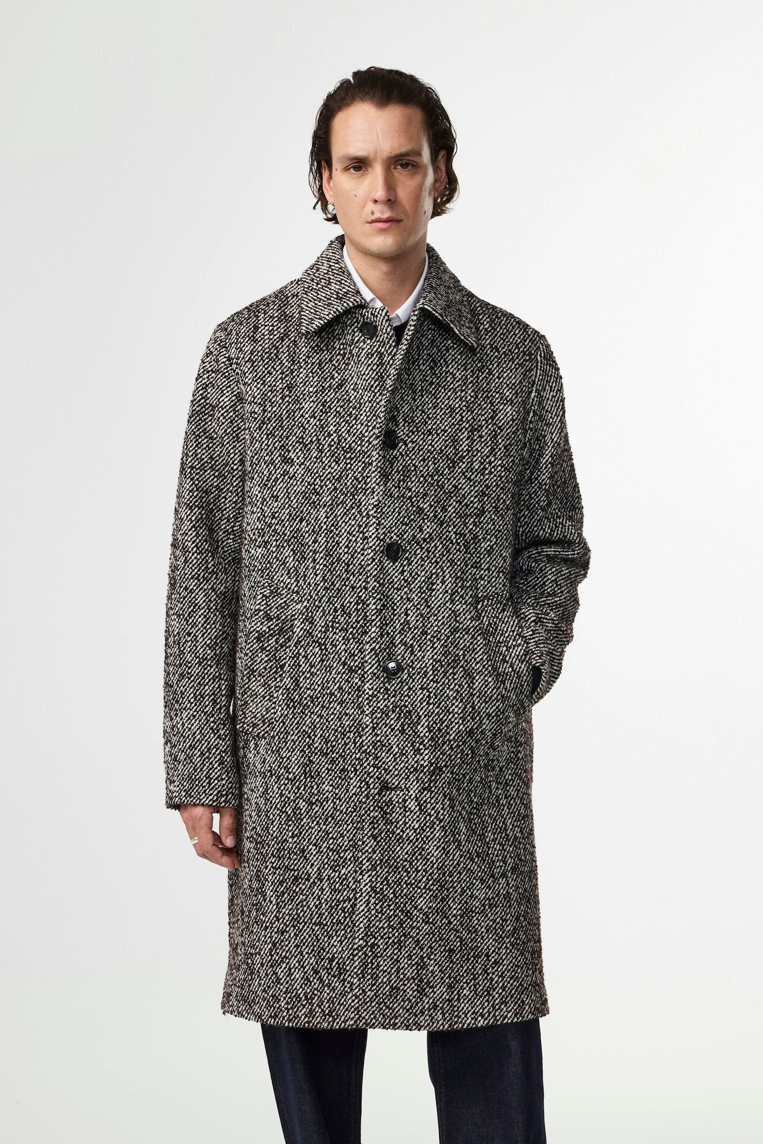 A mid-length overcoat crafted from a smooth, midweight multi-ply wool woven by the renowned Italian mill Manteco. The fabric offers a refined balance of structure and softness, ensuring both warmth and lasting comfort. Designed with clean lines and a minimal button placket, it’s a timeless wardrobe staple made to carry you through the seasons.