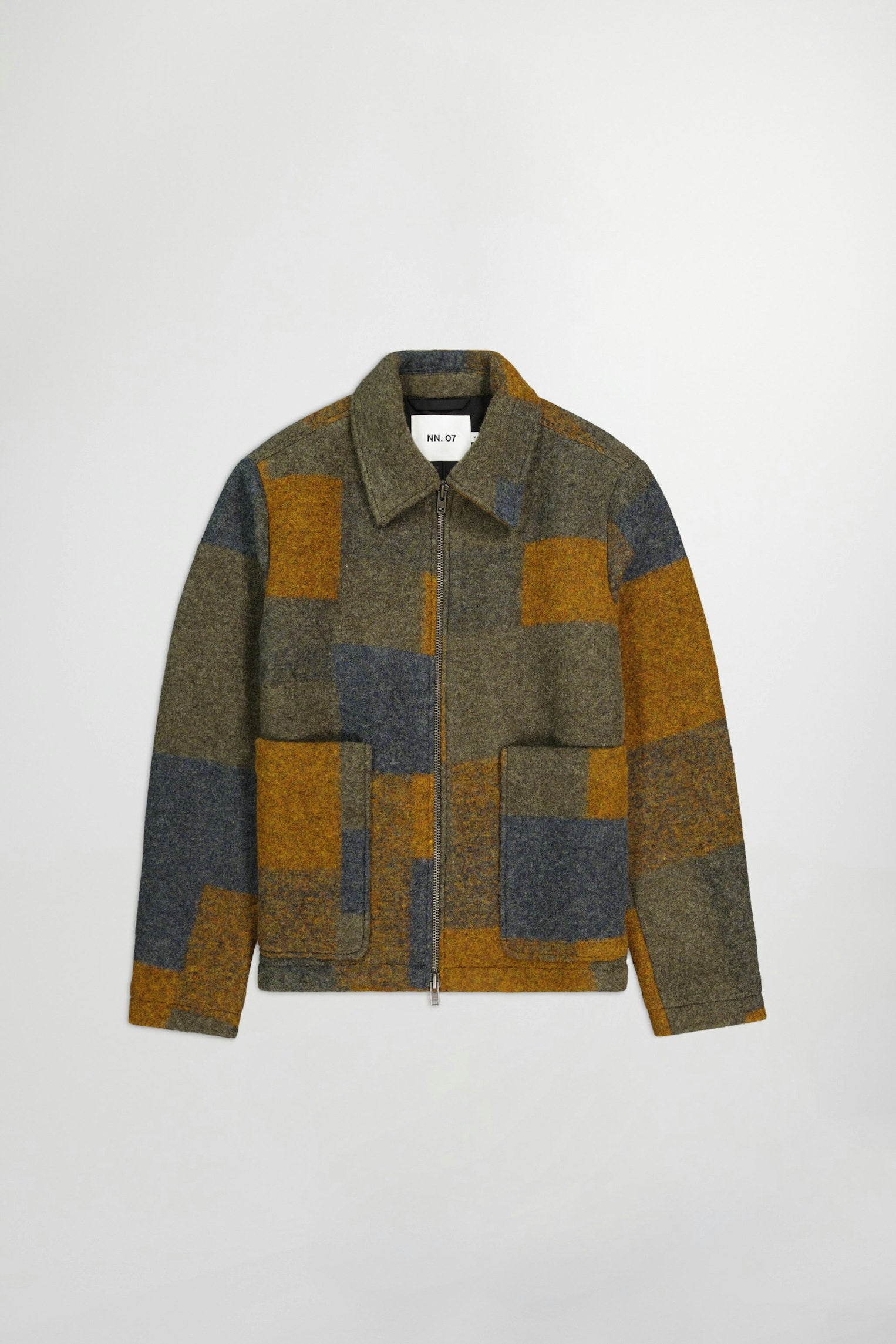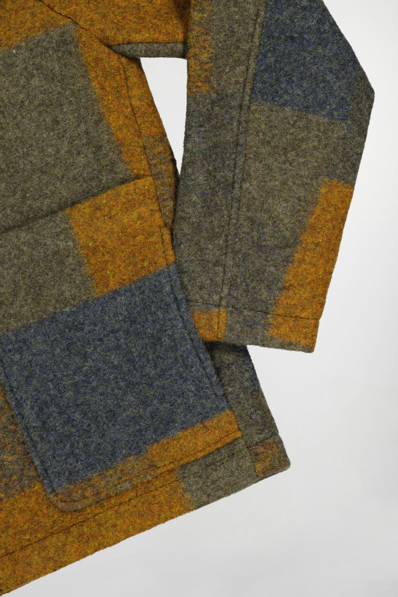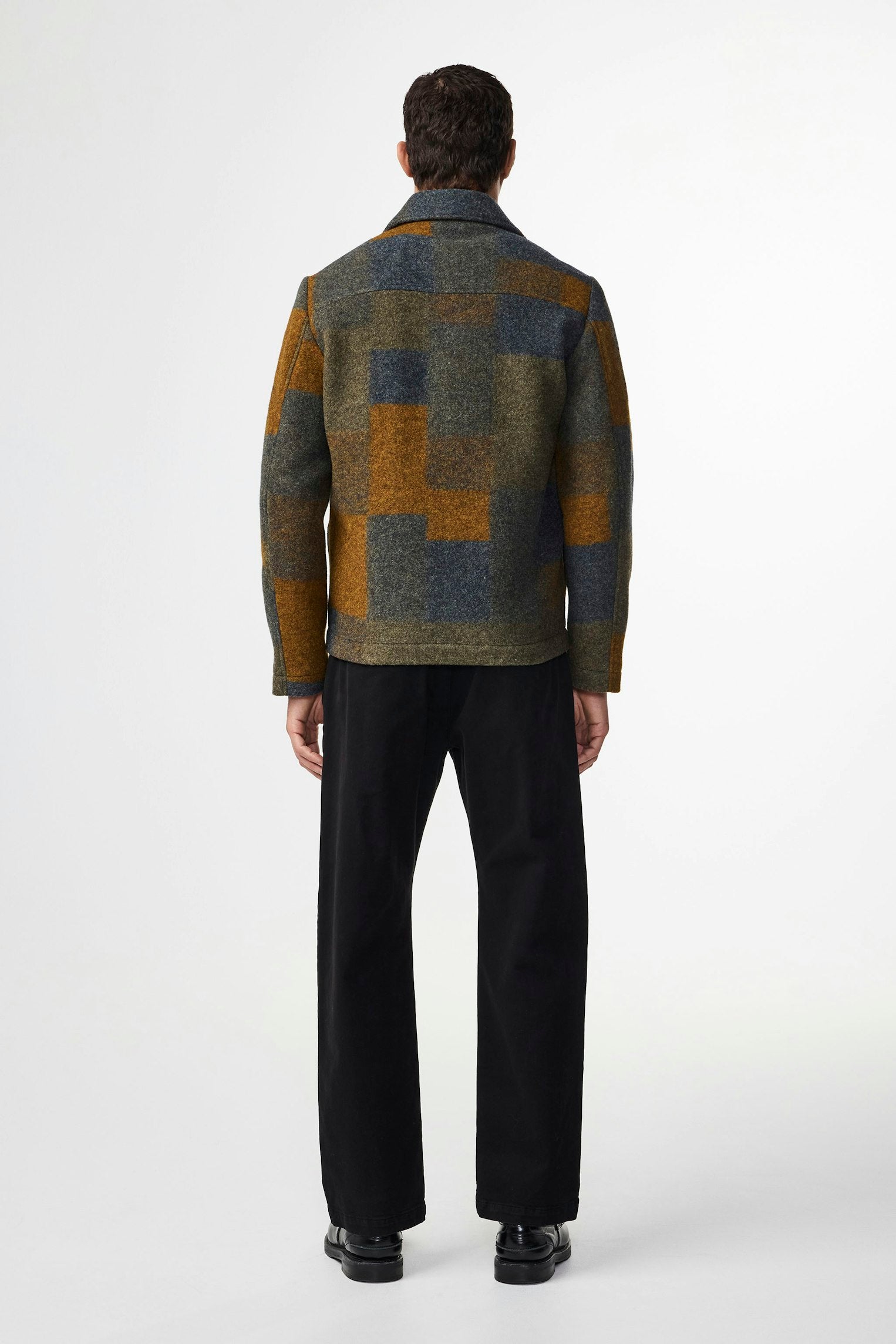 The Gael 8267 wool jacket makes a statement with Italian yarn-dyed checkered fabric. The fit of classic old-school stadium jackets inspires this standout piece. Discreet zip-closure pockets are hidden within the cotton lining on both sides of the chest. Each jacket is unique due to the variation in fabric alignment during the cutting process. The checkered pattern varies slightly with each roll, ensuring no two jackets have the same appearance, creating one-of-a-kind pieces.