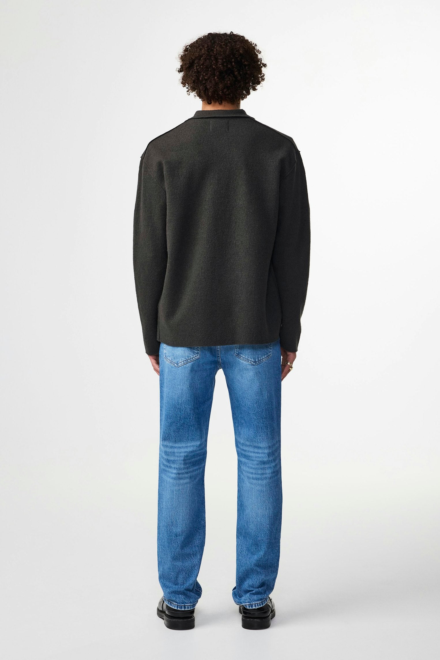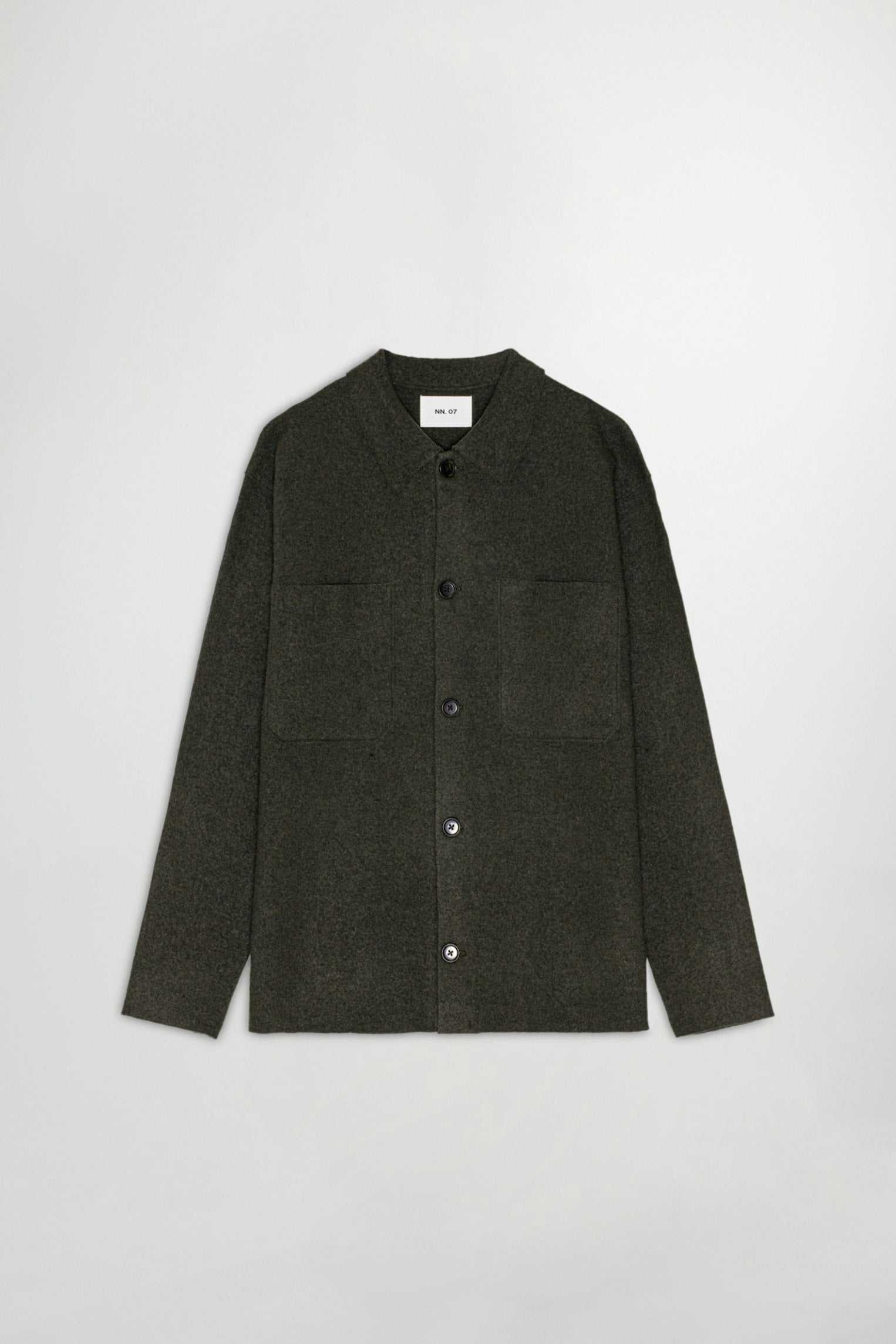 Casual overshirt crafted in soft, lightweight boiled Merino wool, designed with a shirting collar, raw edges, and NN.07 logo buttons
