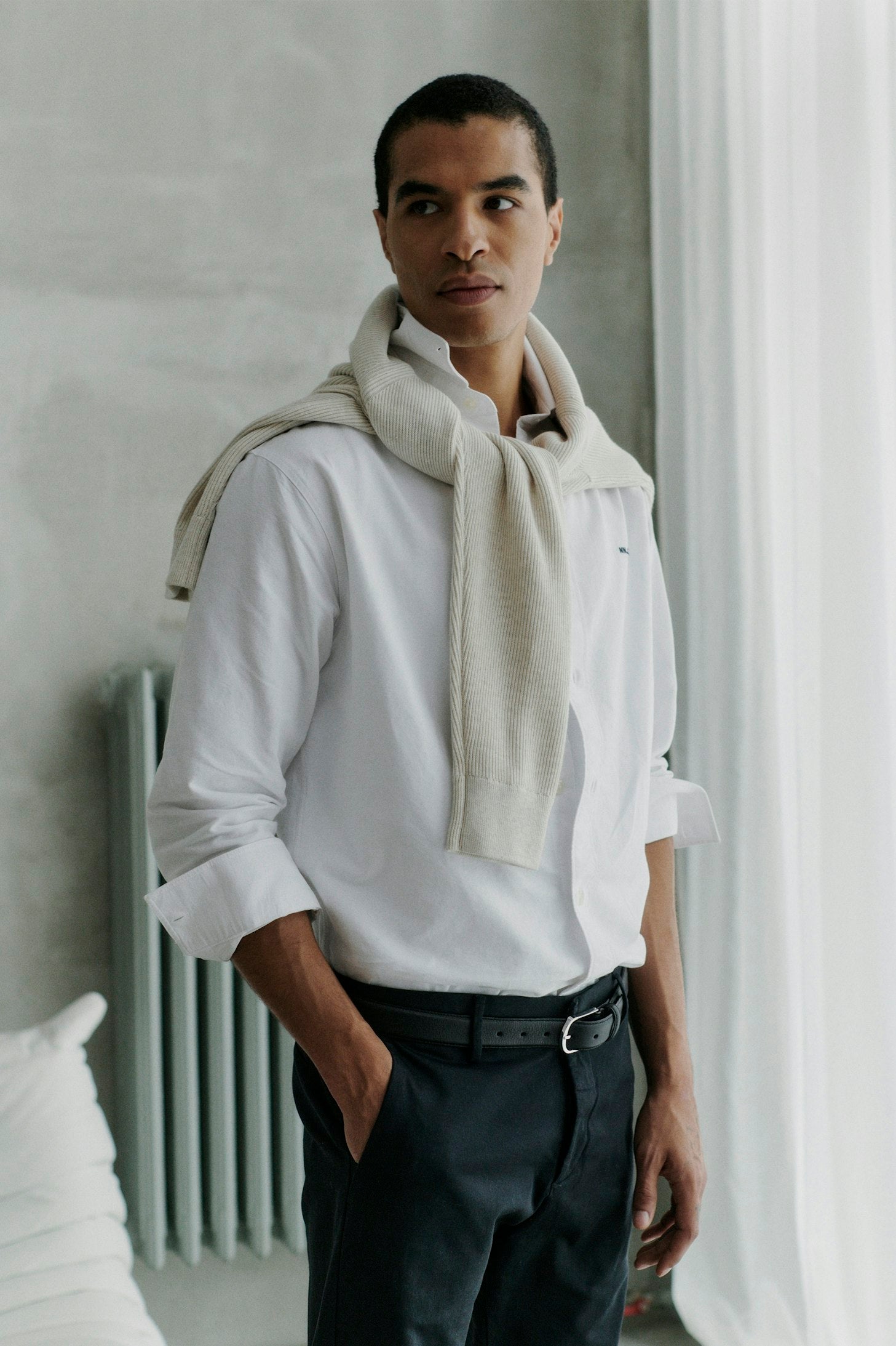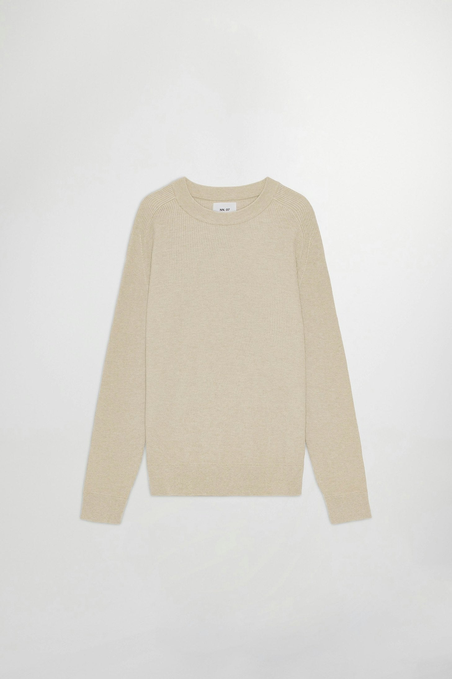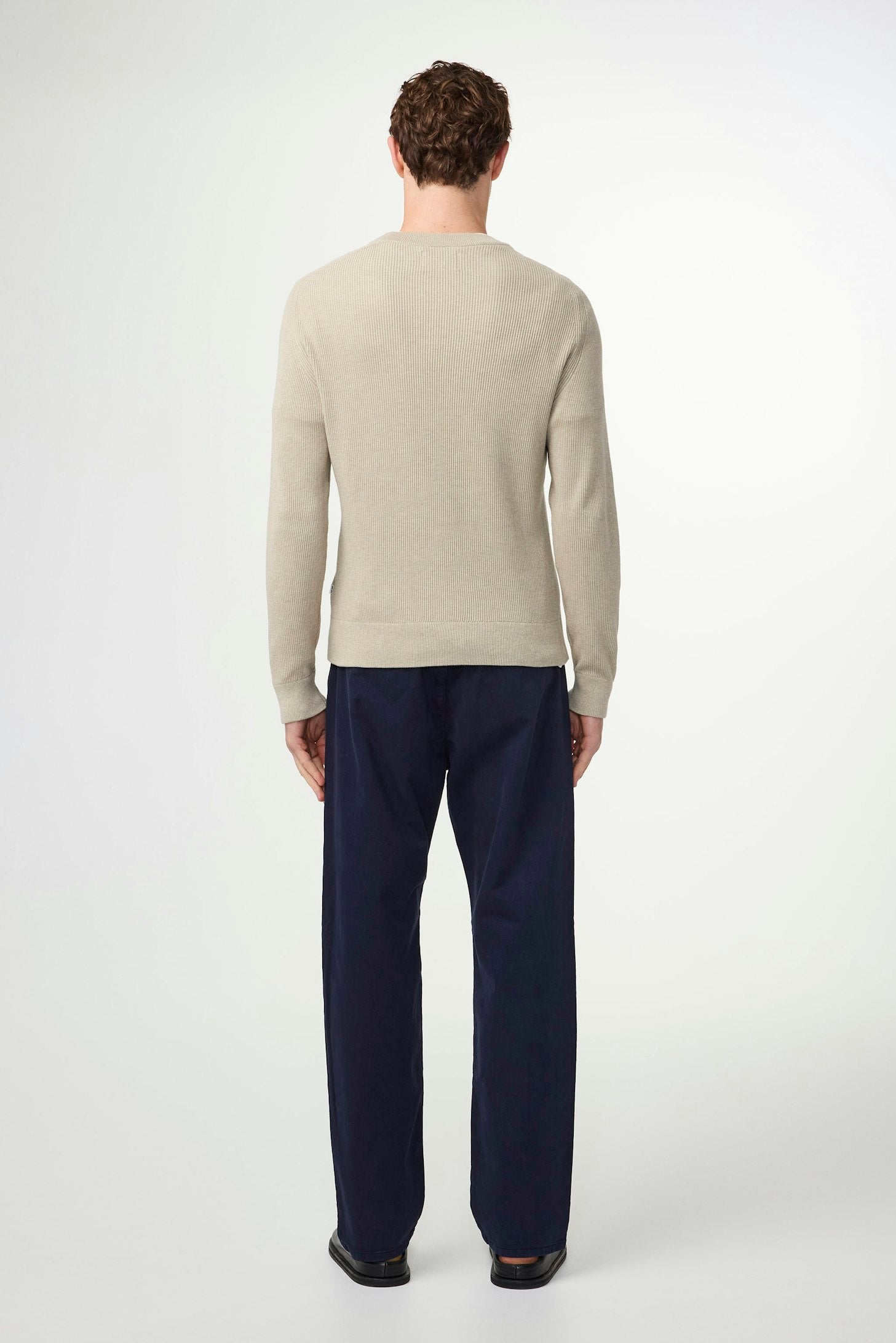 Crew neck sweater crafted in soft organic cotton with a distinctive ribbed texture throughout. Features classic saddle sleeves and offers a lightweight, comfortable feel perfect for layering or wearing on its own.