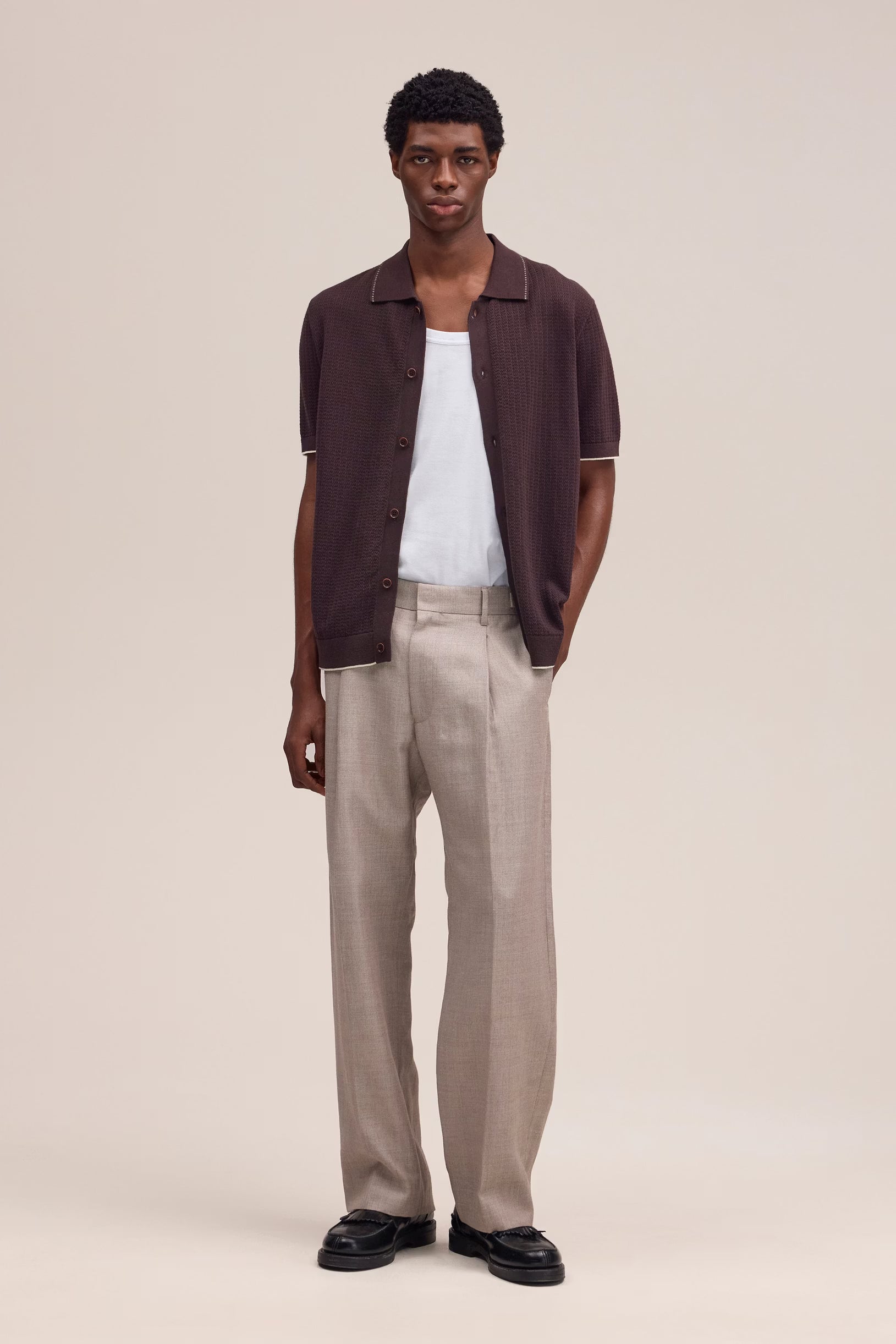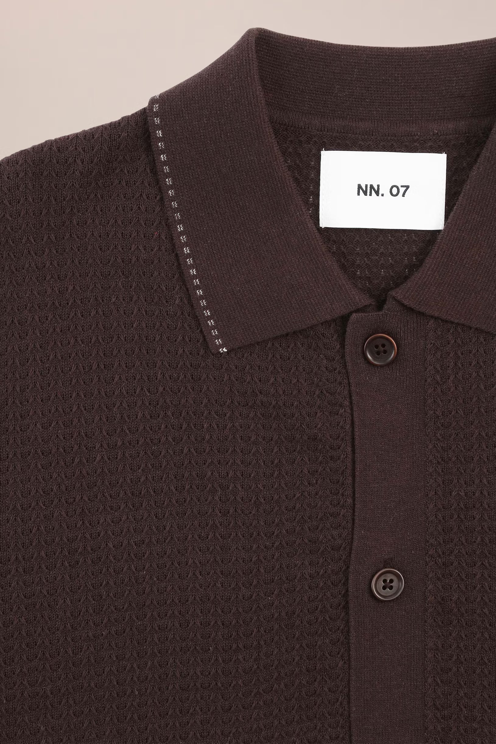 Cotton polo crafted with a crisp, textured stitch and contrast detailing. Finished with plain Corozo buttons on a clean placket for a refined, casual look.