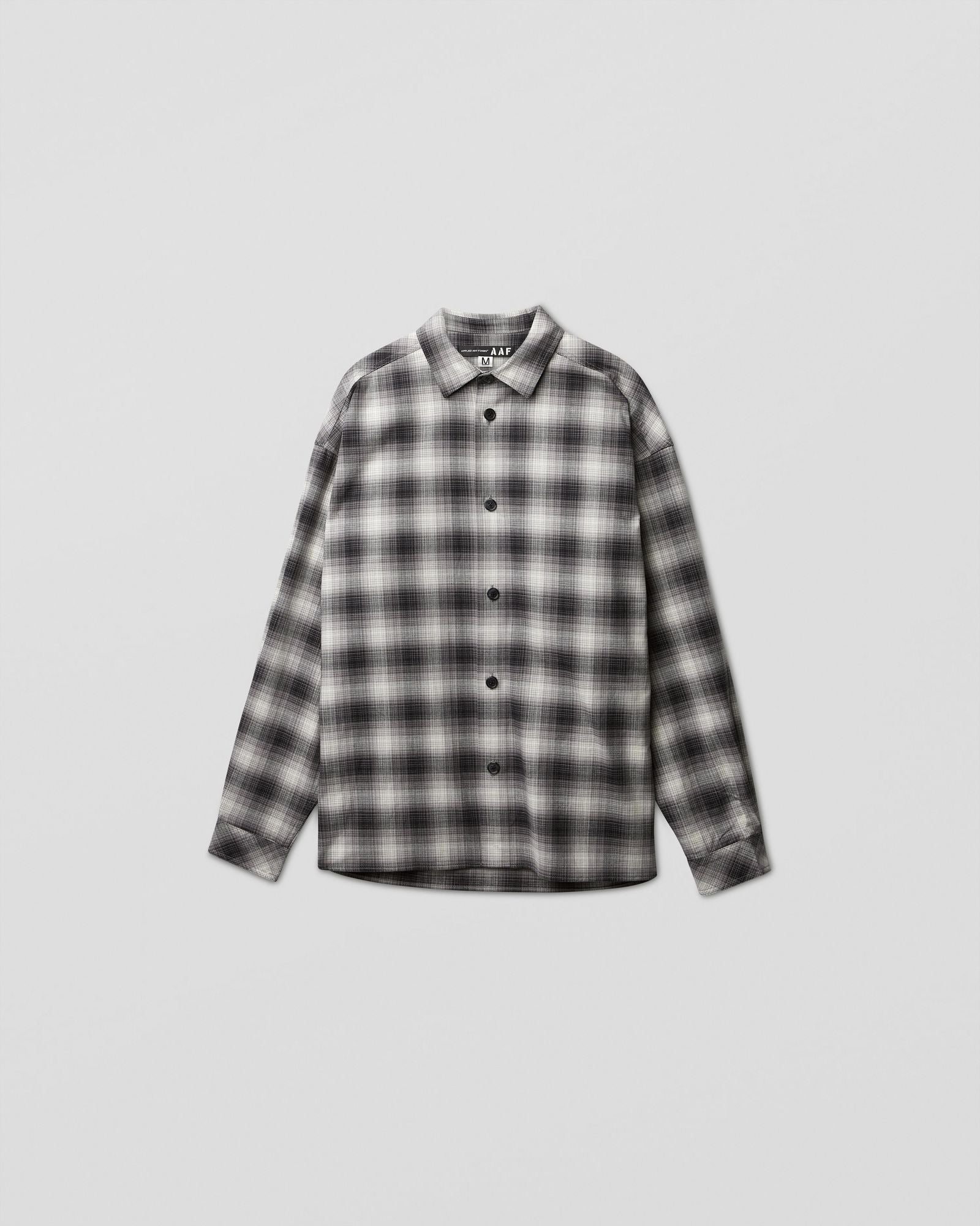 Oversized flannel cotton overshirt with chest pockets, large buttons, and adjustable cuffs.
