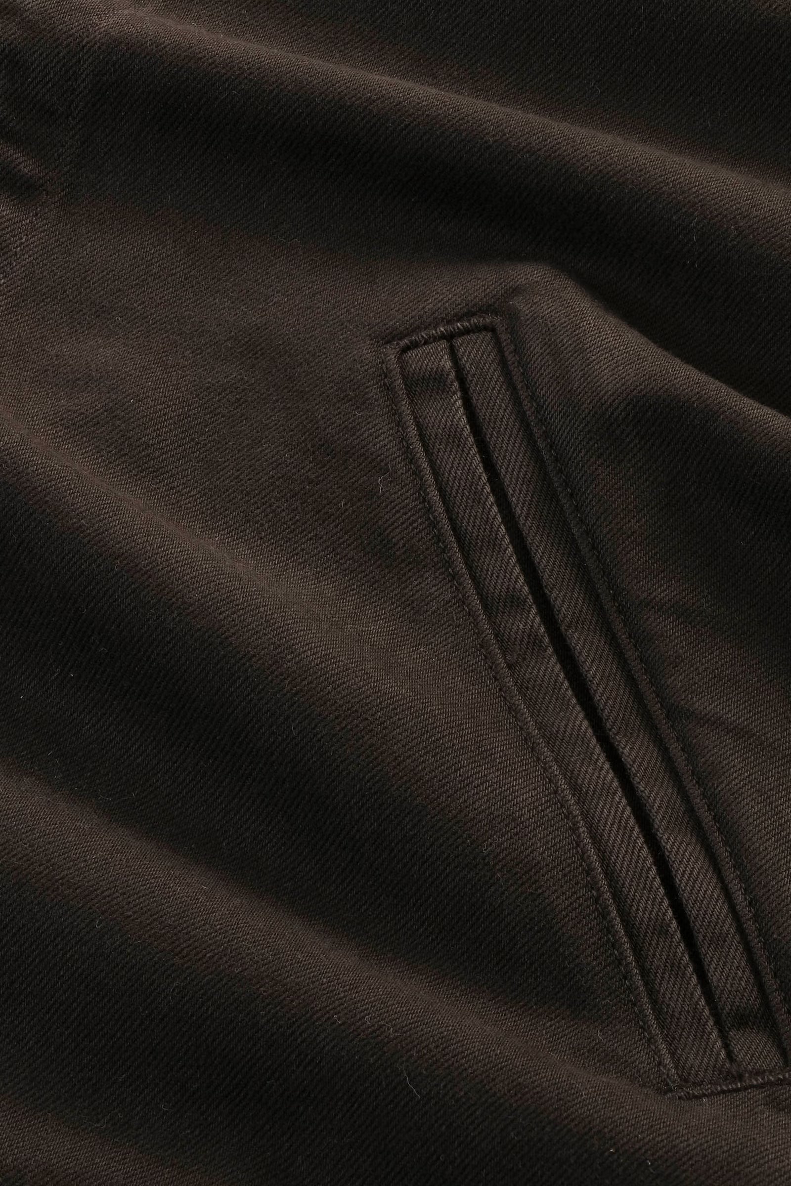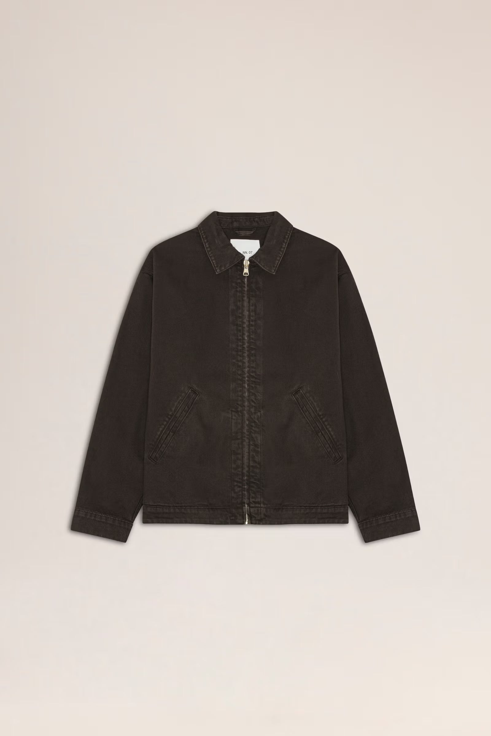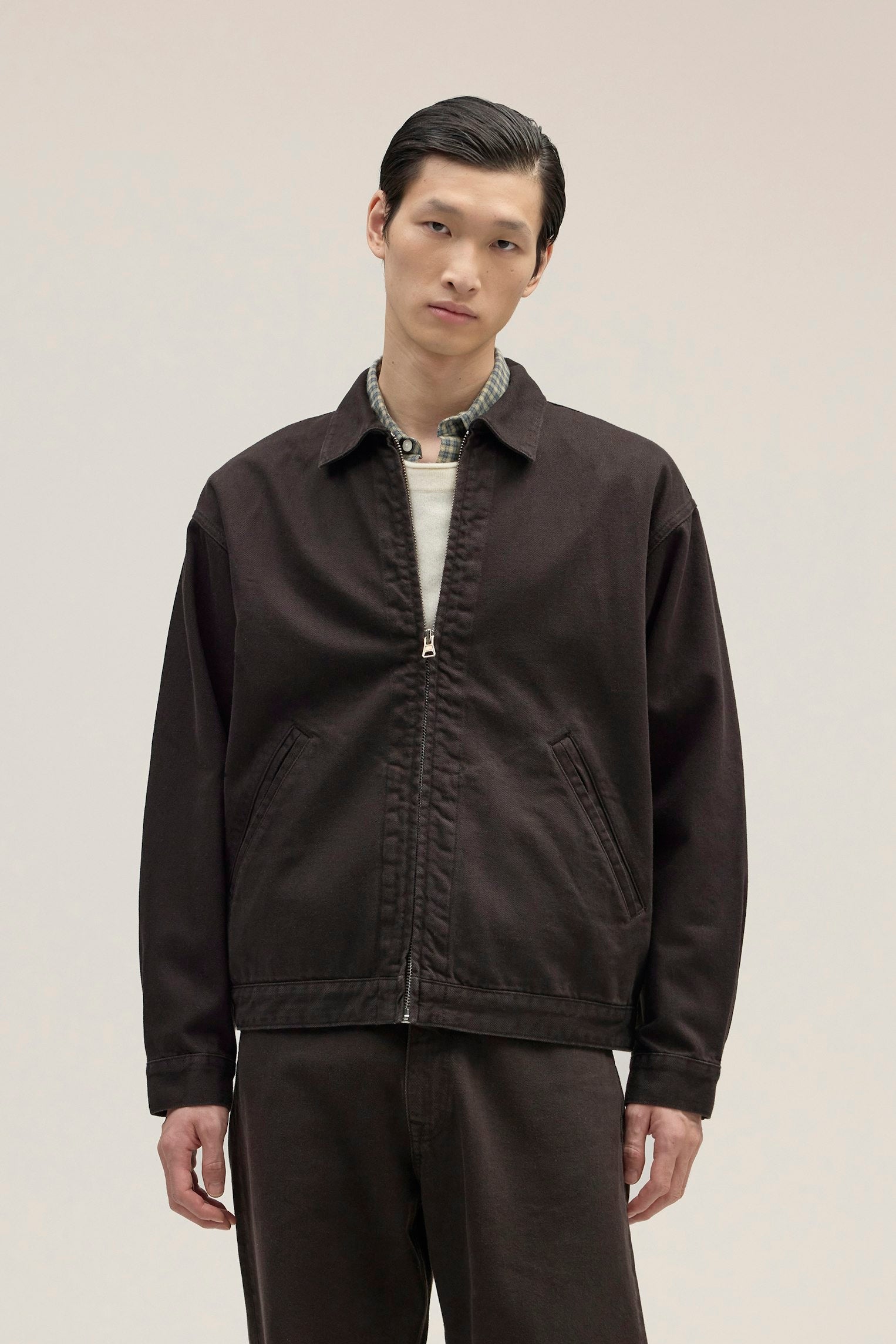 Relaxed-fit casual jacket crafted from 100% organic cotton gabardine with a structured yet soft handfeel. Designed with a garment-dyed finish, logo zipper, and snap buttons for a rugged yet refined aesthetic.