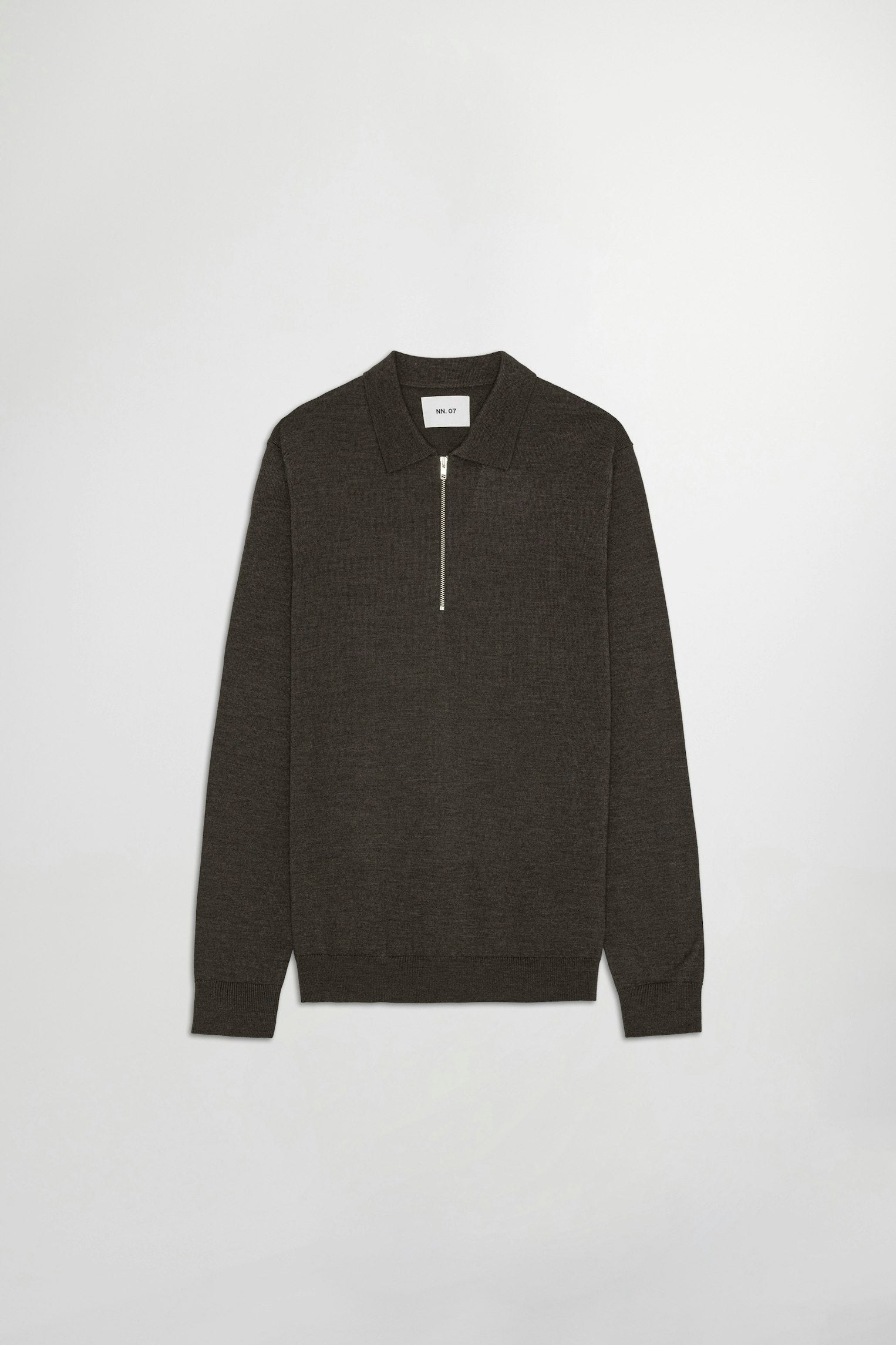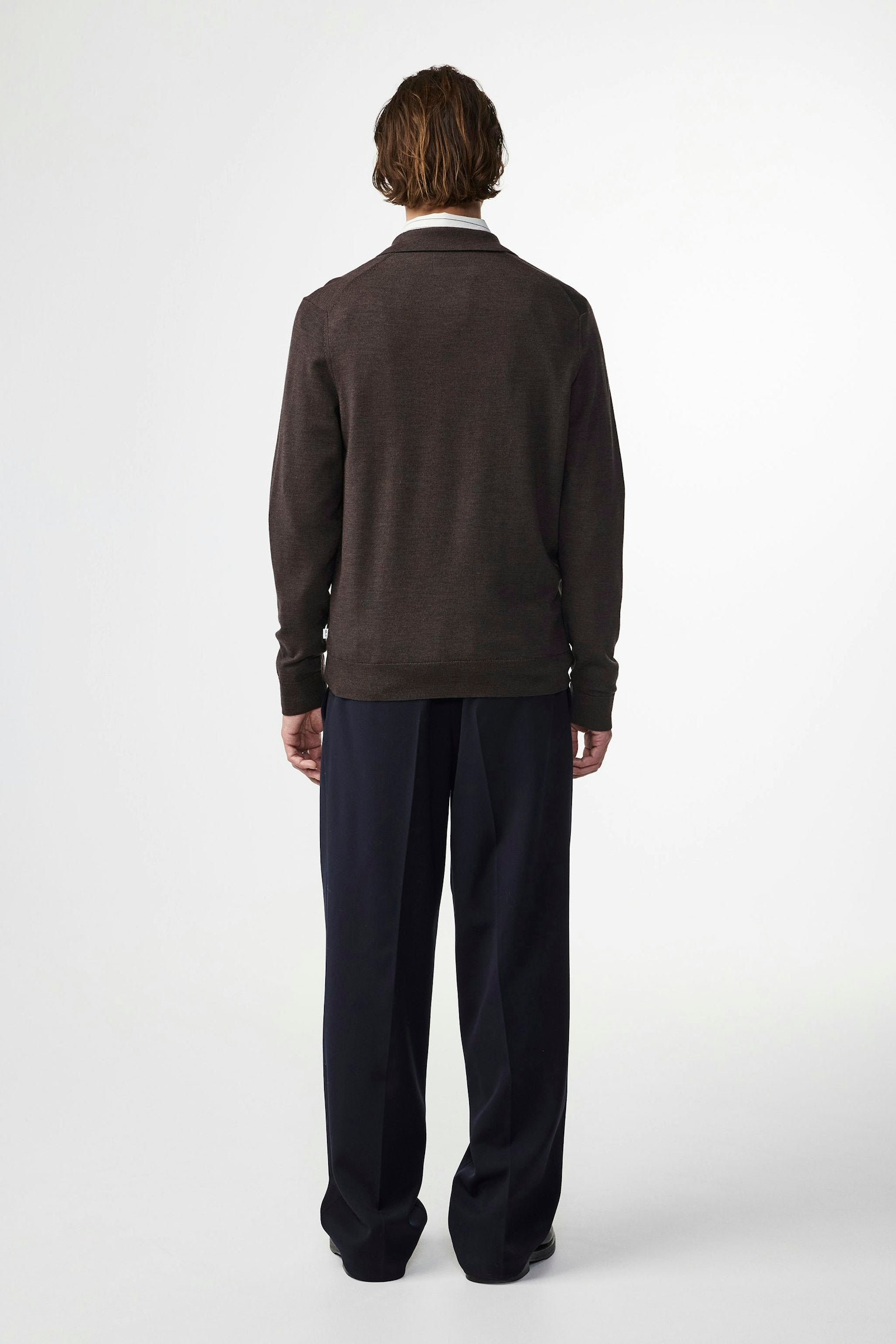 Zip-up polo crafted in soft certified merino wool with a lightweight feel. Knit in a plain stitch with a neat rib along the hem and cuff and topped with a YKK zipper closure.
