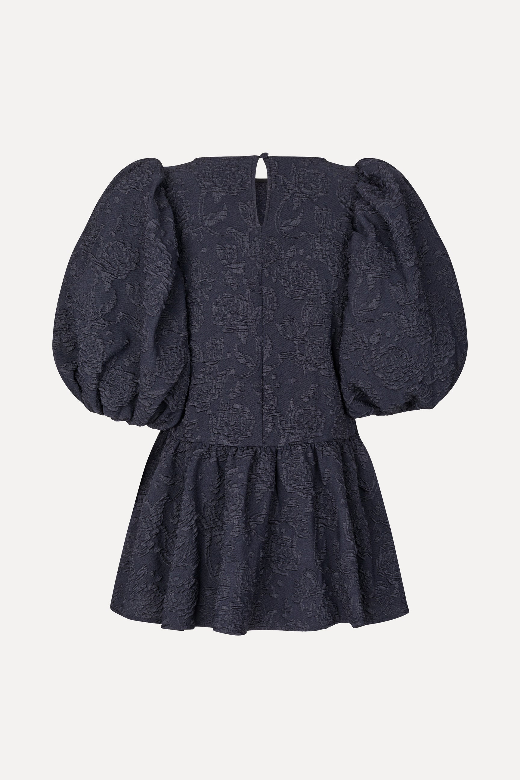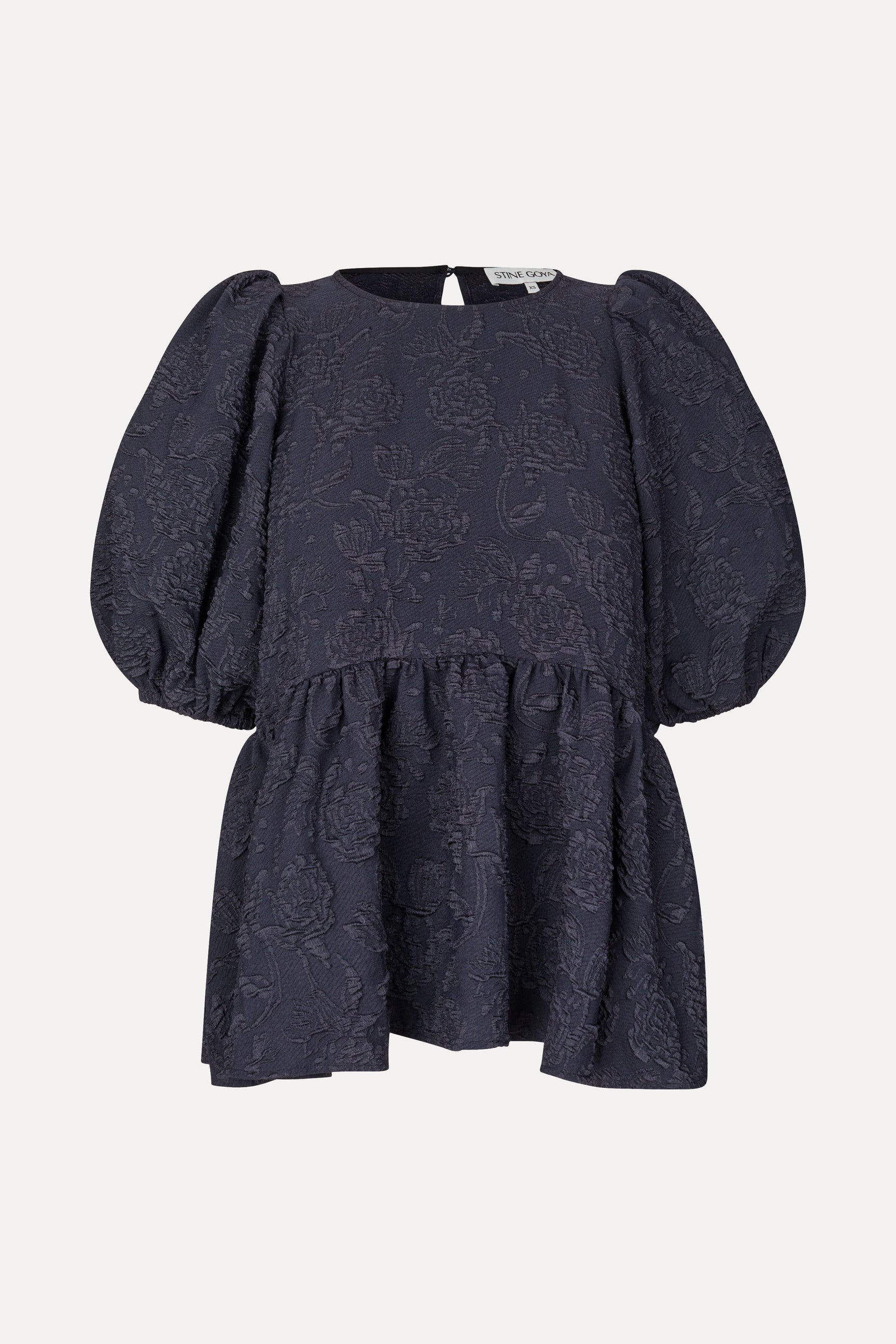 Stretch Jacquard, Puff Sleeve Peplum Top