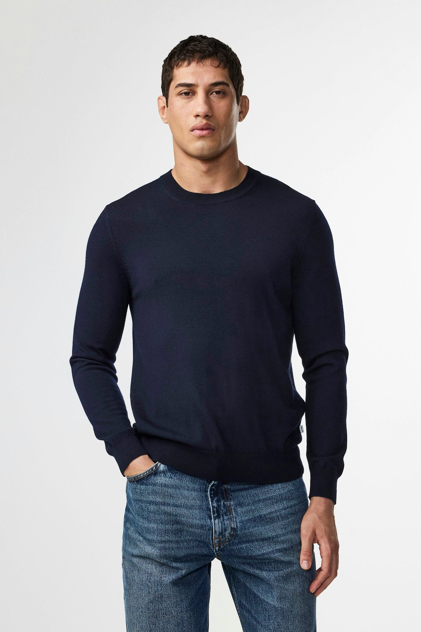 Crewneck pullover crafted in soft certified merino wool with a lightweight feel. Features a classic crew neckline and plain jersey knit that delivers comfort and versatility.