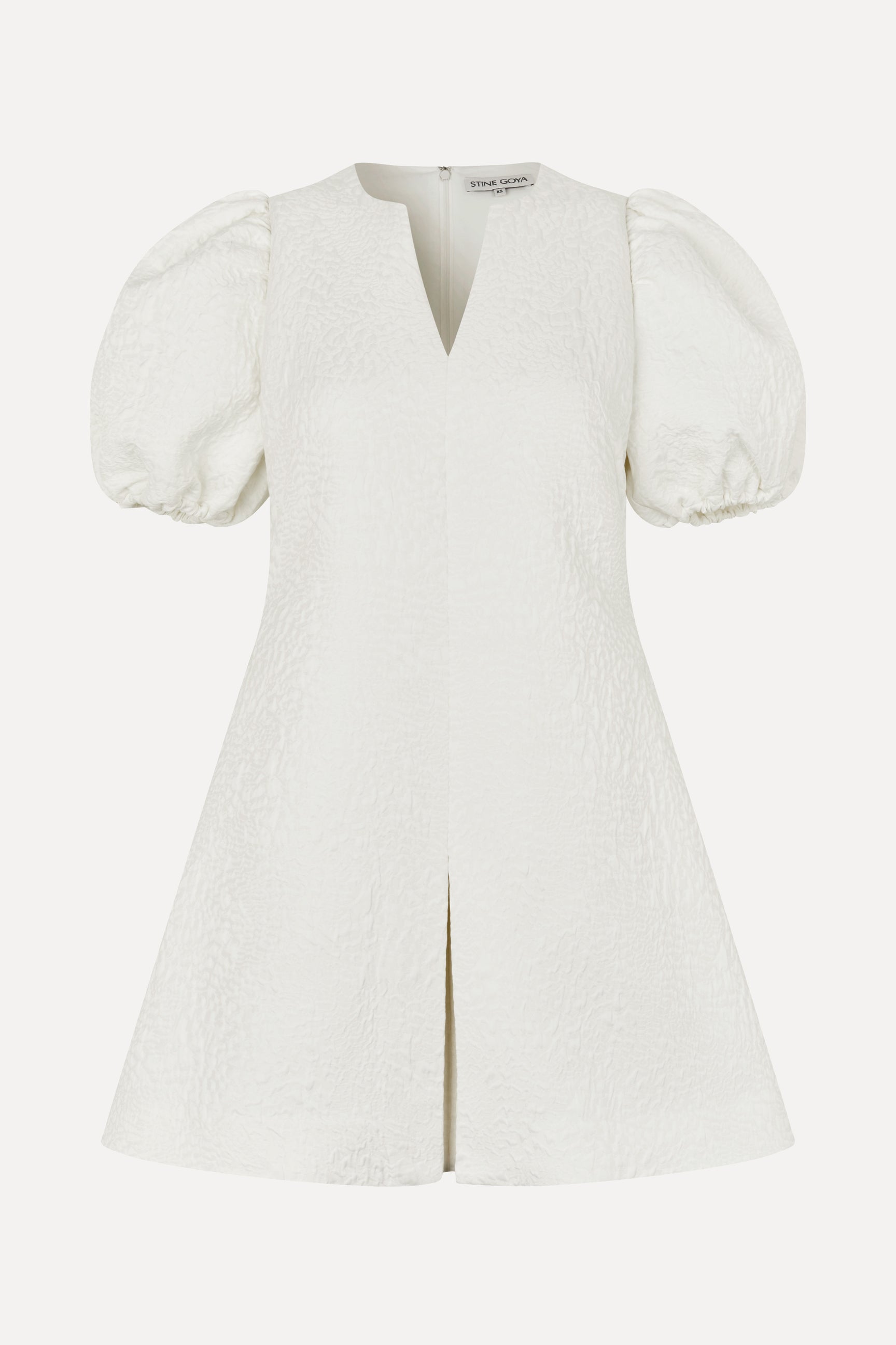 Textured Woven Jacquard, Angled Pleat Mini Dress