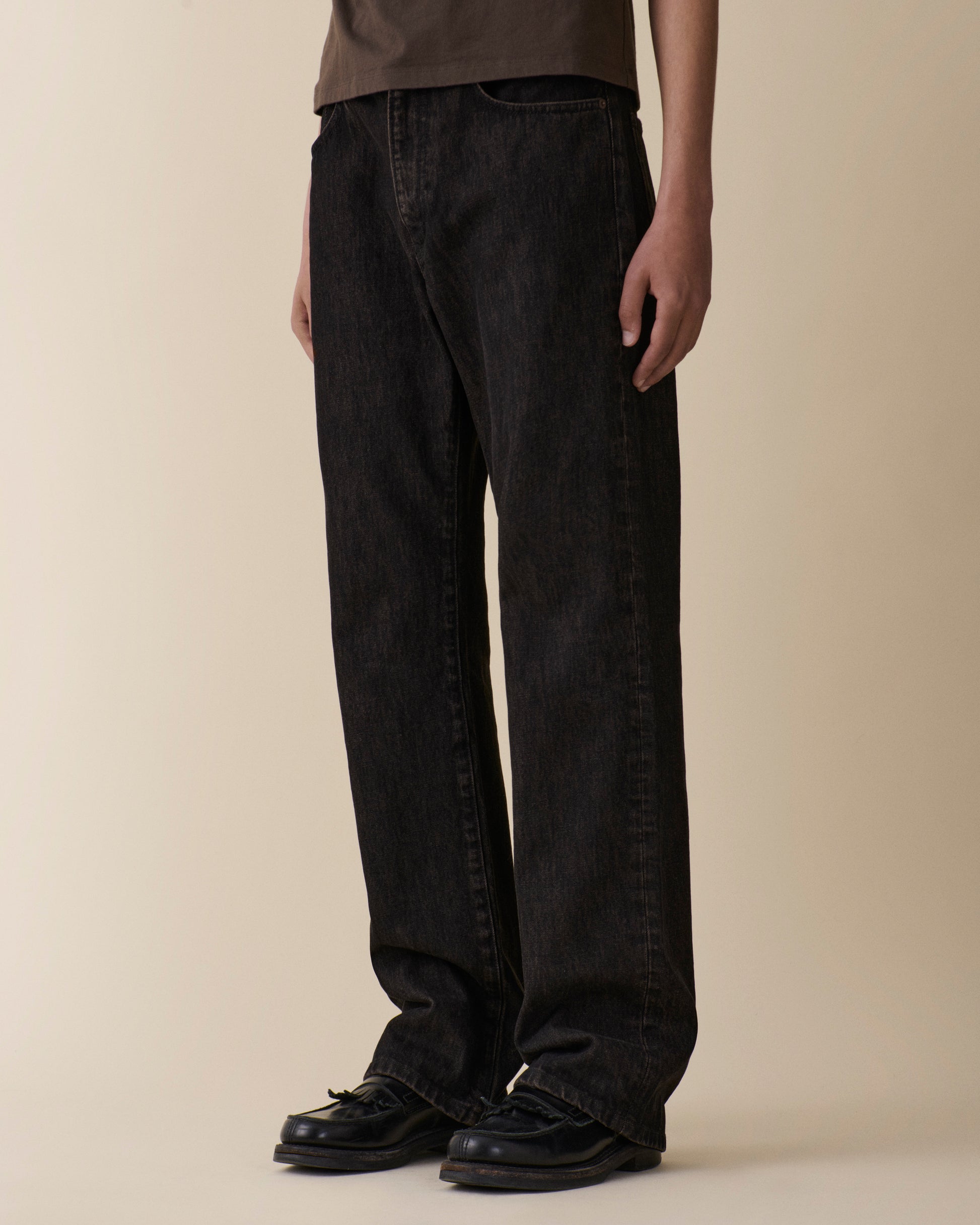 ‘Vega’ is a polished 5-pocket fit with a modest wide fit. Featuring a zip fly, mid-rise waist and loose, straight leg.