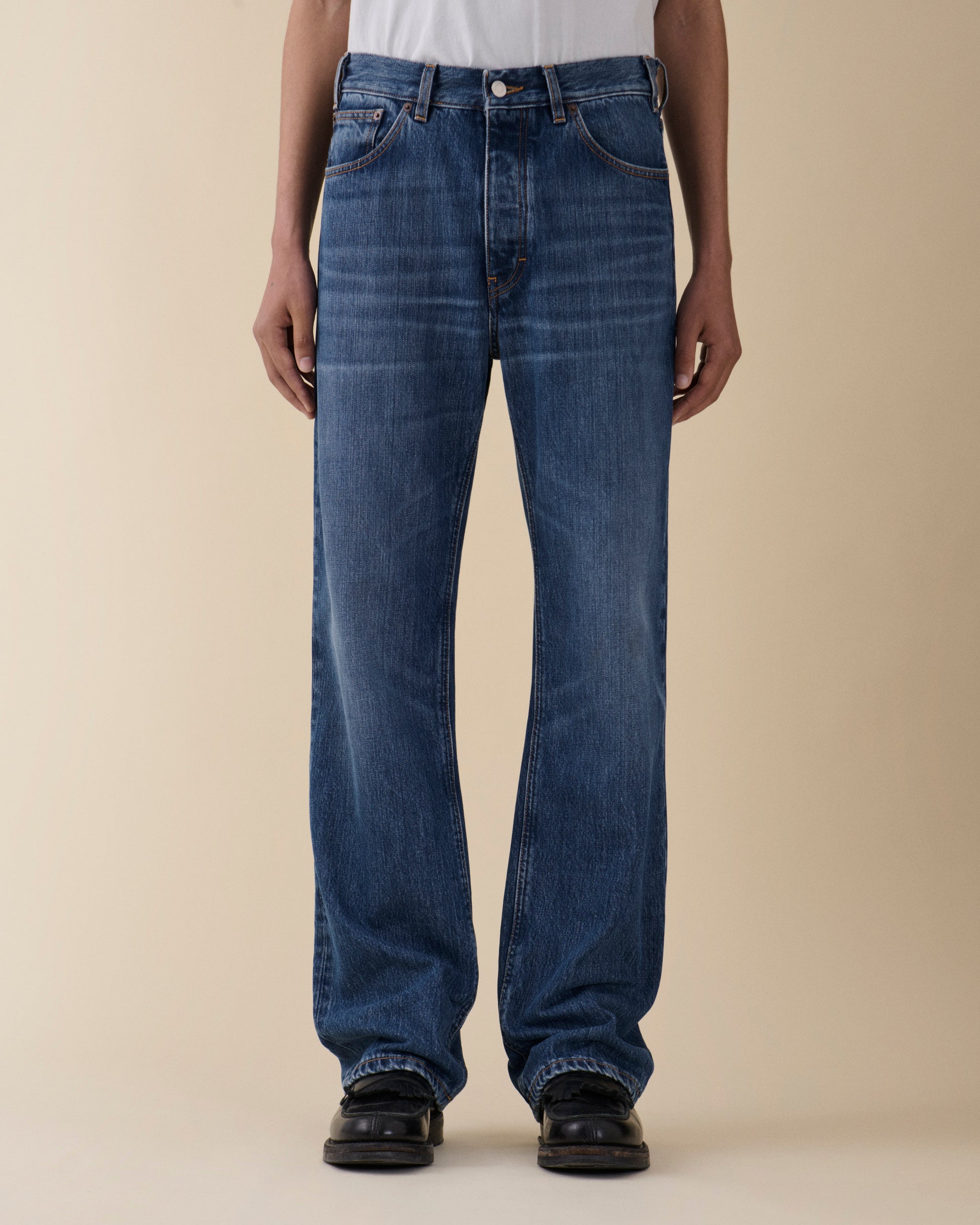 ‘Vega’ is a polished 5-pocket fit with a modest wide fit. Featuring a zip fly, mid-rise waist and loose, straight leg.