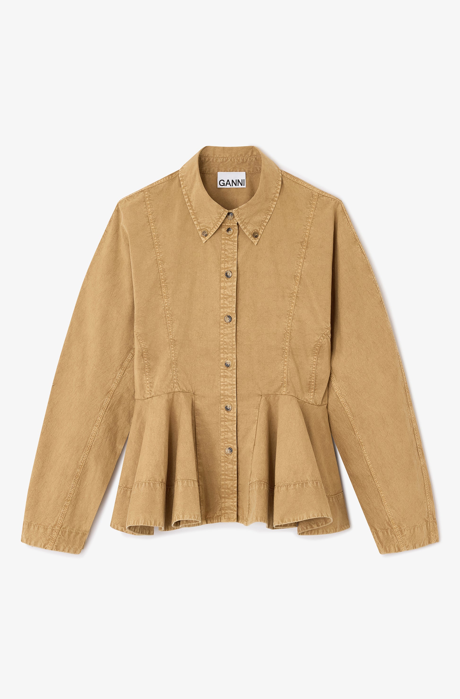 Washed Stretch Cotton Peplum Shirt