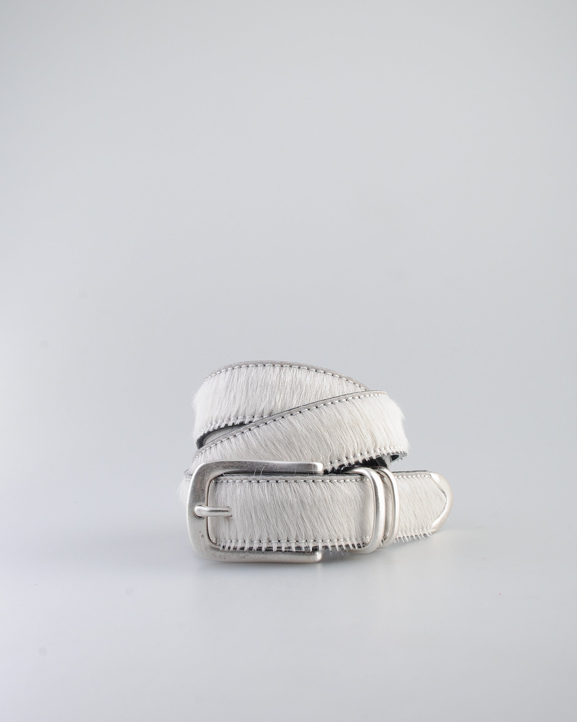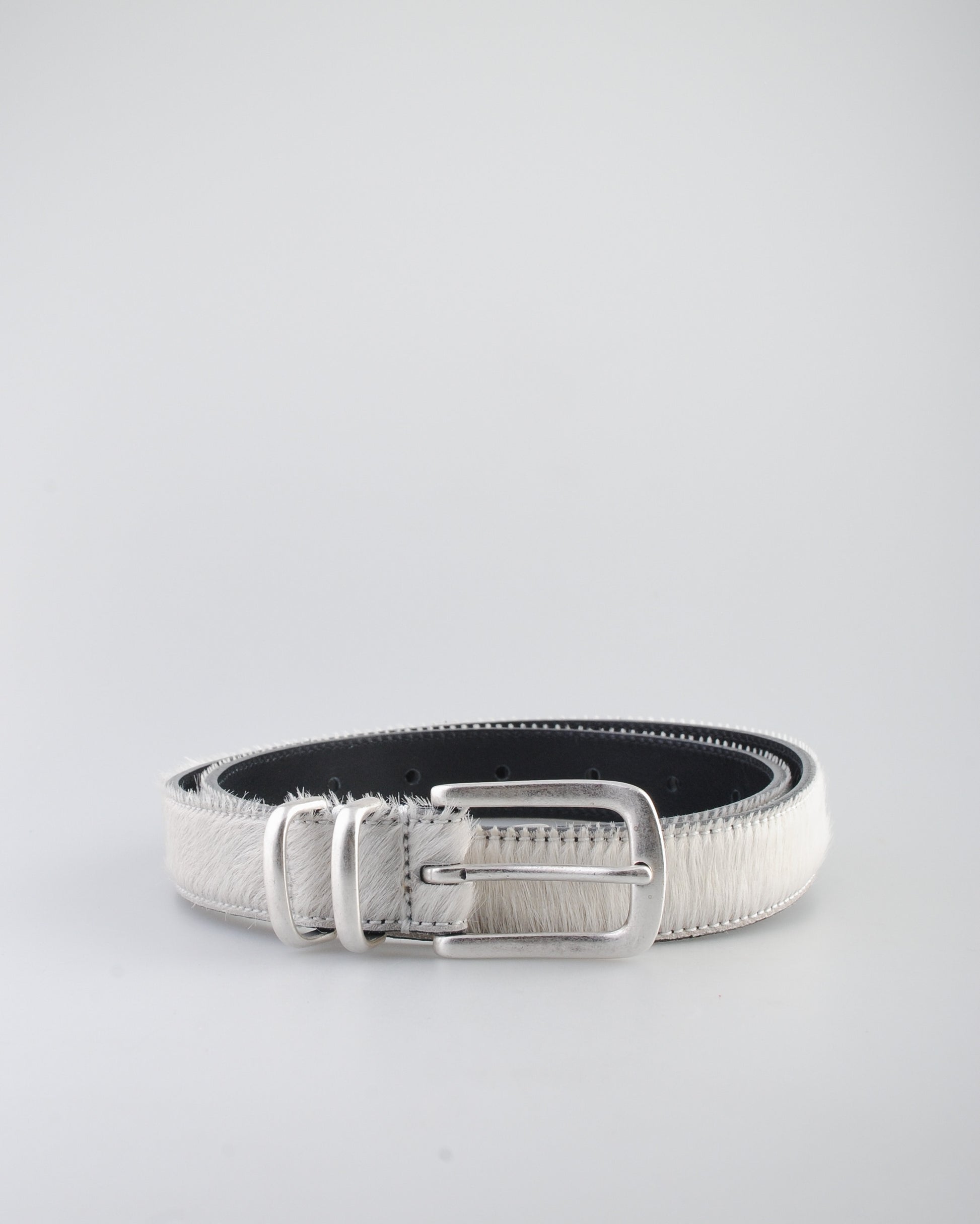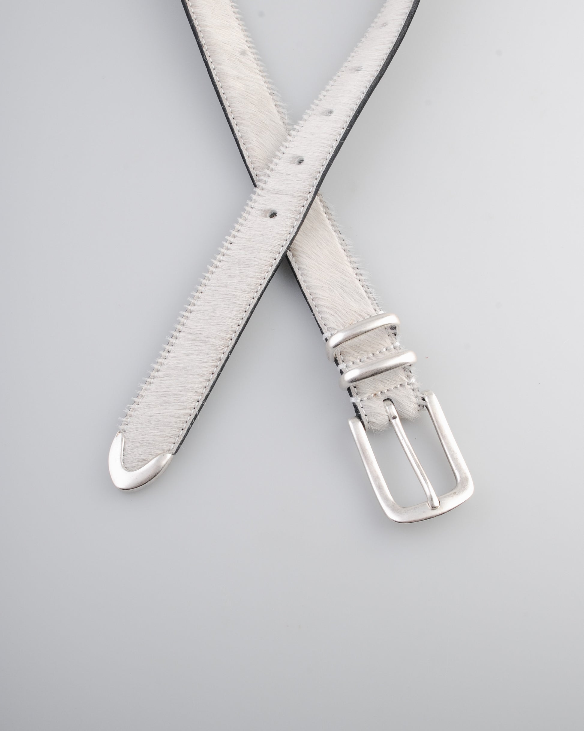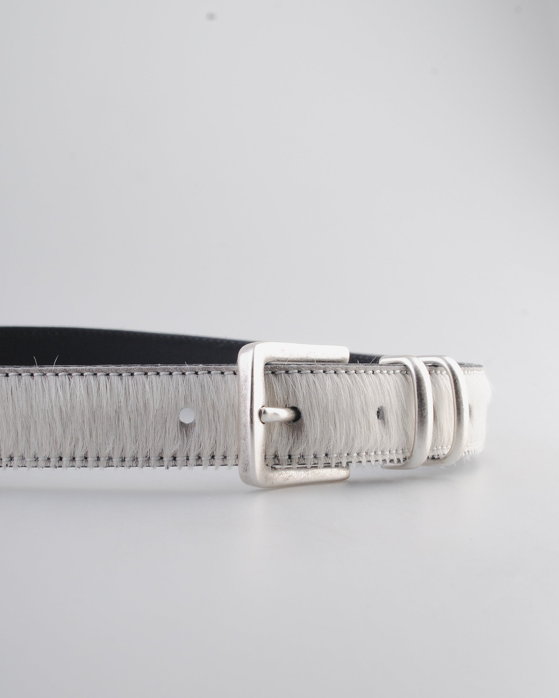 Handcrafted in Denmark, this belt is made from LWG-certified full-grain leather and a sophisticated white hair-on-hide surface. Finished with matte silver-toned solid brass hardware.