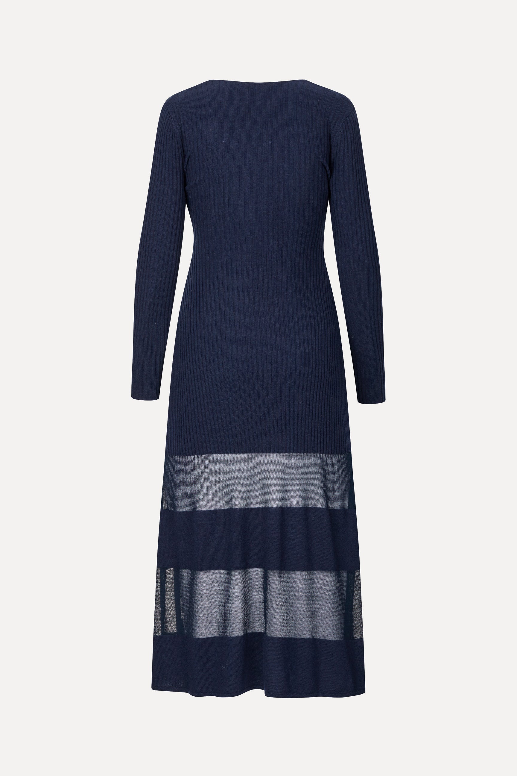 Wool Knit Blend, Scoopneck Fitted Long Sleeve Dress